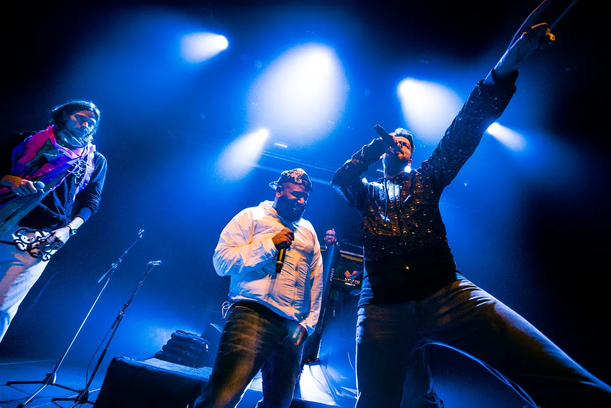 „Niks intro, shit begint als het begint”. Dat is de eerste zin van het album en zo begint De Jeugd vanavond ook in de Pandora-zaal van TivoliVredenburg, met Happen Naar De Baas. Leuk idee om al die albums in chronologische volgorde live te spelen, maar de opbouw van een album is wezenlijk anders dan de opbouw van een concert. Dat speelt de Jeugd vanavond enigszins parten. Want met de tweede (Voorjekijkendoorlopen) en derde (Watskebeurt) track heb je meteen al twee grote feestnummers te pakken en die zorgen voor een goede stemming in de zaal, maar het publiek is nog niet helemaal klaar voor de grote climax. Die zal de rest van de avond ook uitblijven.