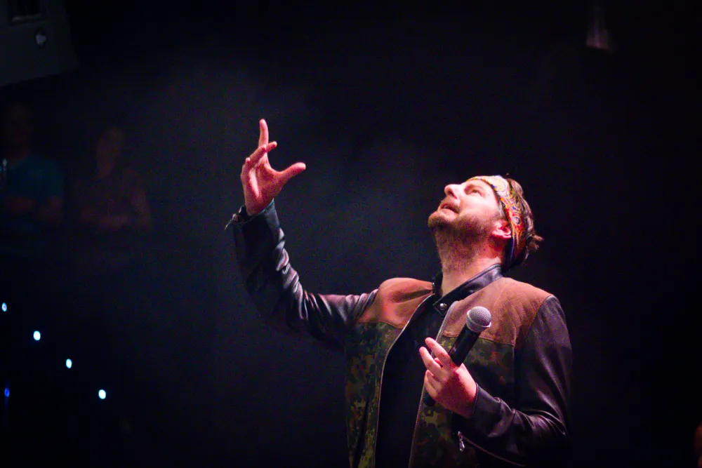 "Zeg, dit is wel het meisjesalbum van ons, hè?", concludeert Faberyayo ondertussen halverwege de avond. En verdomd: vooraan staan inderdaad alleen maar jonge meisjes te glimlachen en knipogen. Echt vreemd is dat niet: Sterrenstof en Get Spanish behoren tot de meest lichtvoetige, upbeat en majeur-liedjes die De Jeugd ooit schreven. Daarnaast zijn de teksten op De Lachende Derde ook iets minder... expliciet. En dan zijn er nog de R&B-glijers waar Vjèze zich doorheen kreunt. Op Vijf Sterren Abbo laat hij zich zelfs op zijn knieën vallen. En wat dacht je van Huilend Naar De Club? "Dames en heren, zijn er mensen met een hart in de zaal? Met gevoelens? Met een ziel? Deze is voor jullie!" Daarop doet ook Bas Bron zijn verse, vooraan op het podium. Maar hij mag meer uit de kast trekken. Jongens vallen elkaar in de armen terwijl Bron een scheurende, tranentrekkende synthsolo geeft. Een gast blèrt in mijn oor: "Die Bas Bron is een ondergewaardeerd genie, hè?" Is dat zo? De Lachende Derde is juist het album waarop Bron voor het eerst écht zijn shine pakt met vieze electrofunkimprovisaties en digitale hardrockriffs.