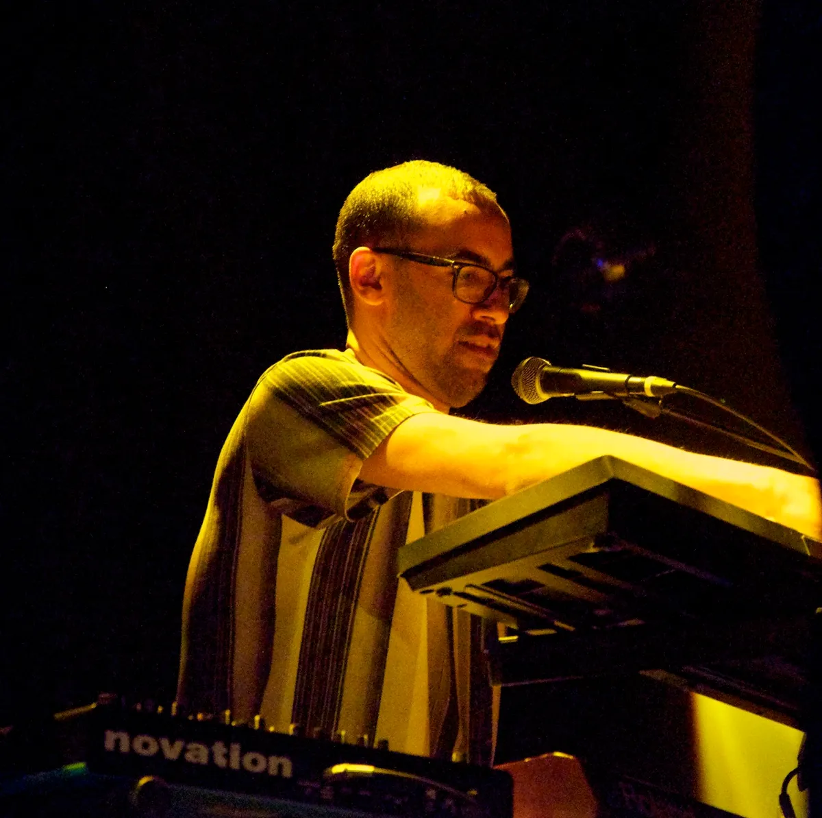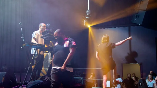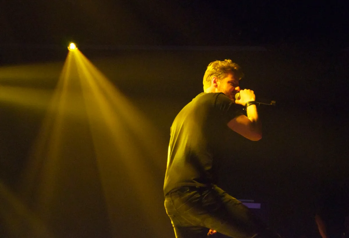 Te gek om De Jeugd eens zo’n moeilijke show te zien geven; een unieke kans eigenlijk. Wanneer hoor je ze nu zo’n weirde, nare track als Issook doen, die eigenlijk meer aan het solowerk van Faberyayo doet denken? Of zo’n keiharde, duister nummer als Benden, waarbij deze avond ineens op een puristische Amerikaanse straatrapshow lijkt inclusief new school-beat met diepe bassen en scherpe snares. Maar indrukwekkendst is misschien wel de moody ballade Dromen van Karton ('dagen zonder zon, pak mijn hand, want ik ben bang dat ik er anders niet uit kom'), fraai ingetogen gebracht door Faberyayo, Vjeze Fur, Willie Wartaal en Bas Bron, die het refrein zingt. Aan het eind mag hij nog maar eens minutenlang laten zien wat hij op de synths in huis heeft. Best een imposante afsluiter eigenlijk (Schnitzel wordt overgeslagen), al lijkt de kans klein dat het nummer in de reguliere shows ooit zo gebruikt gaat worden.