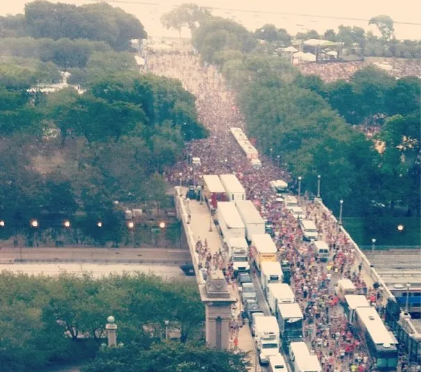 De Lollapalooza organisatie twitterde om 22.30 uur (NL tijd) dat een storm de festivallocatie in Grant Park zou treffen. "ALL festival goers must evacuate IMMEDIATELY. Head to our 3 evacuation locations NOW." Niet veel later volgde een verklaring dat "het festival voorlopig opgeschort is" naar aanleiding van de storm en waarschuwingen van de National Weather Service. Bezoekers worden door de organisatie en de politie van Chicago geëvacueerd. Franz Ferdinand-frontman Alex Kapranos spreekt op twitter de hoop uit, dat zijn band nog op zal treden als de storm overwaait. De evacuatie is wel een iets ander verhaal dan in Steenwijkerwold: het Lollapalooza festival in Chicago heeft een dagcapaciteit van 95.000 bezoekers.