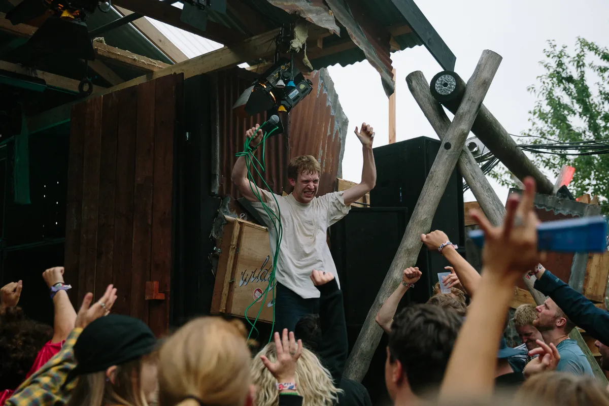 Zo zijn er meer liveacts die op Wildeburg scoren: troubadour Lucky Fonz III opent de vrijdagmiddag met zijn charmante podiumhits ‘Zoenen’ en ‘Ik Heb Een Meisje’, om met zijn drumcomputer vervolgens (‘Japanse zonnestralen in de Nederlandse regen!’) een heel veld aan het dansen te krijgen. Typhoon speelt een ochtend later op dezelfde spot een akoestische show. De Zwolse rapper vertelt hoe hij vorig jaar op Wildeburg nog een praatje hield over zijn burnout (‘toen zat ik er nog middenin’), en hoe hij nu weer is herrezen als een fenix met dank aan god. Alleen saxofoon en akoestische gitaar als begeleiding is niet zo opzwepend als de Titanenband waarmee hij vijf jaar geleden menig festivalweide in de fik zette, maar het is goed om hem weer te zien schitteren na zo’n pittige periode en een nummer als ‘Surfen’ komt na een nachtje doorhalen keihard binnen.