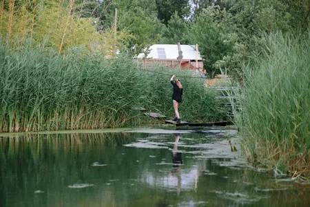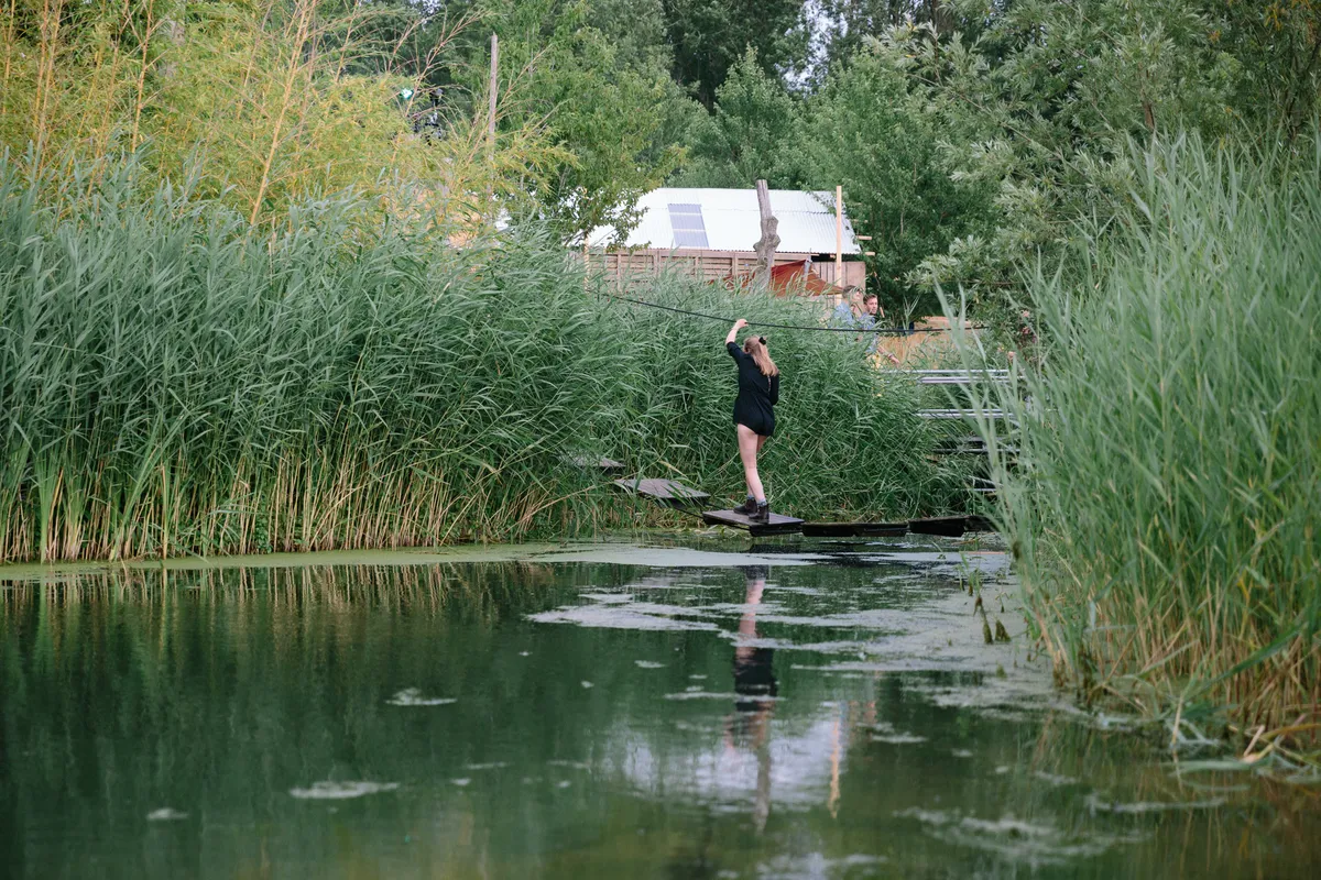 Voor het eerst kun je ook het water over, waar een extra camping is opgetuigd en het slowhouse-podium zit verstopt dat nog het meeste doet denken aan het Duitse festival Fusion – een grote inspirator voor Wildeburg. Maar er is meer te ontdekken: de Klooiklup en het Amsterdamse Skatecafé hebben een kolderieke eigen area opgetuigd waar je kleffe 80s nederhits, Snoop Dogg en Gigi D’Agostino kunt horen tussen liveshows door van bijvoorbeeld de Amsterdamse synthpopprins Karel. Die geeft vrijdagavond misschien niet zijn meest vurige optreden, maar heeft een paar coole nieuwe liedjes op zak (er schijnt al snel een nieuwe EP te komen!) en klautert er weer lustig op los. Wanneer hij eenmaal woest tussen de mensen door galoppeert, krijgt hij iedereen aan het springen.