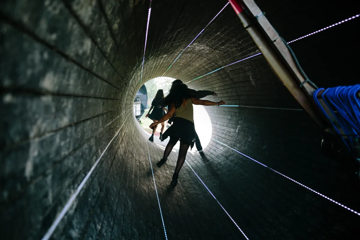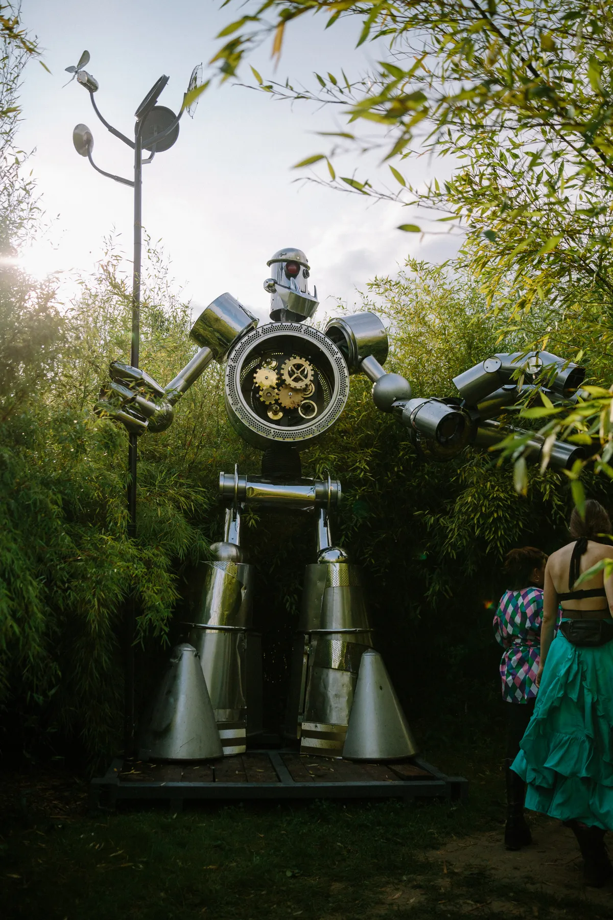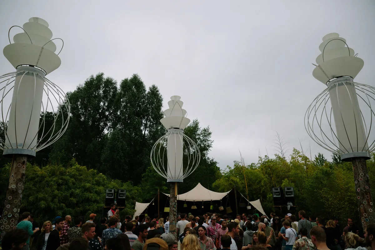 Deze vierde editie heeft het festival nogal een groeispurt doorgemaakt, met een capaciteit van een dikke tienduizend man is het voor het eerst de grote zus Into The Woods voorbij geschoten, kaartjes werden per loting verkocht (en waren mega-gewild) en het labyrintische terrein is er flink op uitgebreid. Nog altijd kun je verloren raken in de bamboebossen, een hoekje om kruipen en opeens oog in oog staan met een glinsterend robotbeeld van meters hoog. Je kunt op het uiteinde van een meterslange glijbaan stuiten waar nog net twee paar benen uit steken, na uren struinen opeens bij een spacey stage belanden met een Engels drop-thema of vloekend op zoek zijn naar het Ochtendgloren-podium (je hoort waar de muziek vandaan komt, maar hoe loopt dat verdomde paadje om er te komen?!).