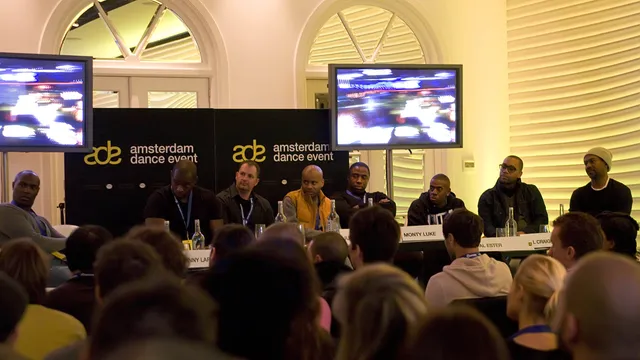 Panels waarin de moderator zelf het hoogste woord voert zijn meestal het ergst. Van die gesprekleiders die hun eigen vragen interessanter vinden dan de antwoorden, afschuwelijk. Maar Derrick May - Detroit veteraan - is op Amsterdam Dance Event de uitzondering op die regel. Hij zweept de soms voorzichtige stad- en genregenoten op met een aanstekelijke bravoure. Daar zitten ze dan op een rij, drie generaties veteranen van de Detroit techno, ter gelegenheid van hun collectieve 25-jarige jubileum. Stacey Pullen, Al Ester, Monty Luke. Carl Craig, die er met zijn grote bril uit ziet als een CEO van een onmetelijk hip bureautje. Kenny Larkin, de bijdehante youngster. De reus Kevin Saunderson. In het midden de man bij wie het allemaal begon: Juan Atkins. Later vanavond staan ze met zijn allen in de Melkweg, vanmiddag vertellen ze verhalen uit de oude doos.