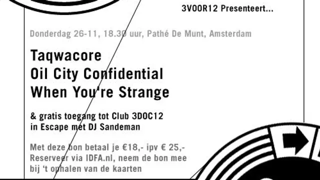 Ook dit jaar partnert 3VOOR12 met het International Documentary Film Festival Amsterdam (IDFA). Op donderdag 26 november presenteren we de drie beste rockumentaries van het moment in zaal 11 van de Amsterdamse bioscoop Pathé De Munt. Lezers van 3VOOR12 krijgen voor deze sneakvertoningen een flinke korting. Kom na afloop de stramme spieren losdansen bij de eenmalige Club3DOC12 in Escape Lounge en Studio.