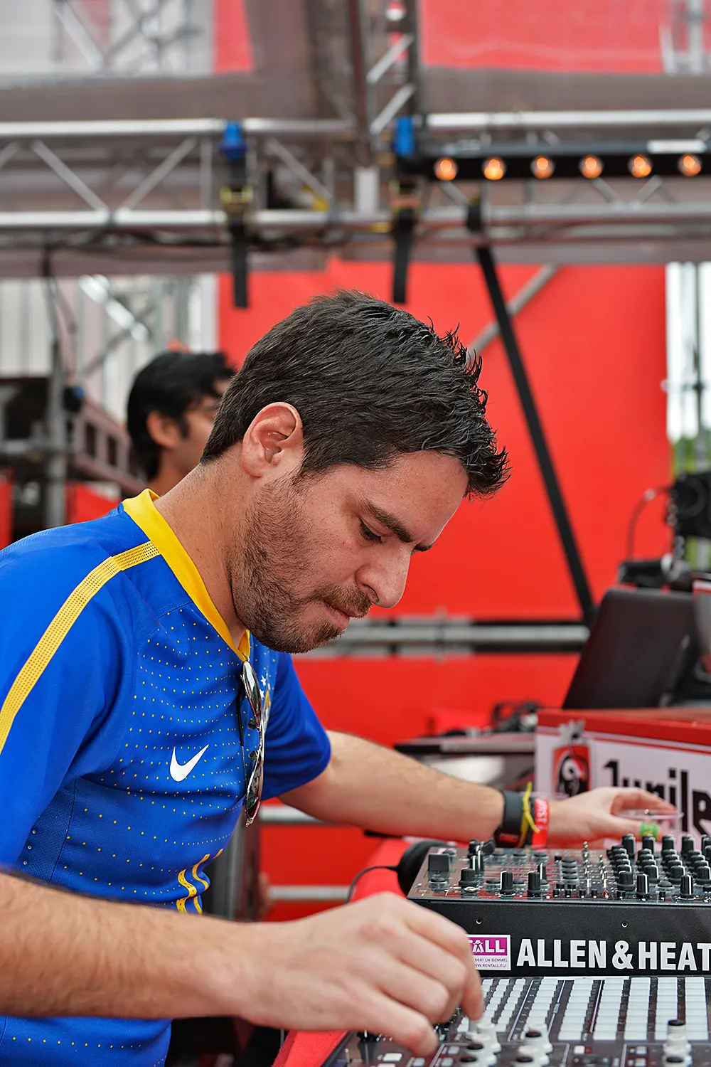 15:50: Een paar meter buiten de tent waarin Awanto 3 staat te draaien, komen we de eerste Italianen, die toch bekend staan als fervente technoliefhebbers, van vandaag tegen. Met een Italiaanse vlag om de schouders reizen de heren af naar ROD, die middels zijn openingsset de tijd krijgt om zijn ochtendverhaal te vertellen. De Rotterdammer heeft al vroeg flink wat mensen voor zijn neus verzameld en de Area B, waarin hij draait, ziet er fraai uit. De kleur rood heeft de overhand, terwijl er veel hout gebruikt is. Al vrij snel is ons opnieuw duidelijk dat Benny, of eigenlijk moeten we ROD zeggen, een uiterst populaire jongen is. Wakker worden met de donkerharige krullenbol is ook helemaal niet verkeerd. In een niet al te hoog tempo, spreidt hij ruim twee uur zijn sound tentoon. De bekende glimlach op zijn gezicht verraadt dat hij het naar zijn zin heeft. Voor het stevigere ROD werk is vandaag nauwelijks ruimte, maar dudelijk is dat er met zijn opbouwende kwaliteiten eveneens weinig mis is. Er komt rond half twee al vuur uit de spuwers voor hem; Awakenings begint wakker te worden. Een goed teken. (JP)