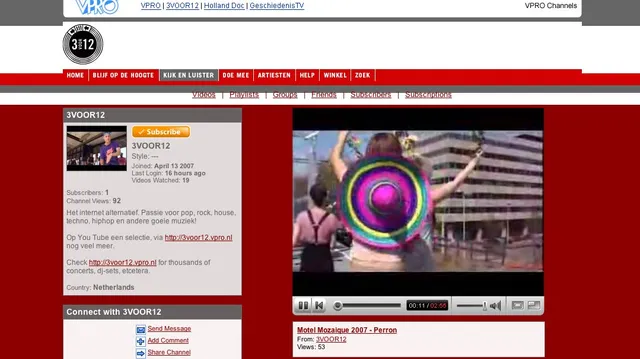 Zoek je bij YouTube zoekt op 3VOOR12, dan vind je daar nu al veel materiaal van ons. Maar we hebben nu ook ons eigen kanaal op de razend populaire videosite. We hebben ook besloten niet flauw te doen: geen kleinzielig gedoe met alleen korte vooruitblikken of teasers, nee, gewoon complete interviews en reportages. Een plek waar regelmatig nieuwe mooie inhoud in zijn geheel wordt getoond. Hopelijk ontdekken zo nog meer mensen 3VOOR12.