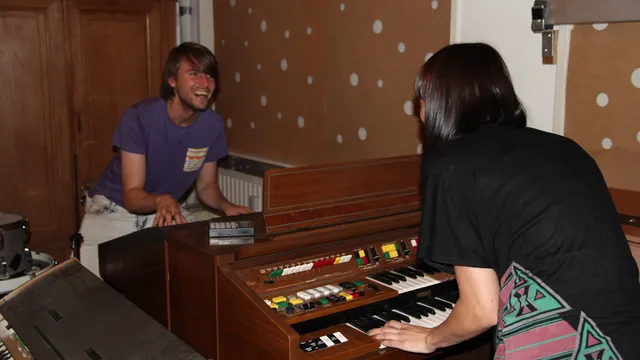 De eerste opnames heeft Bombay Show Pig echter niet in de Kytopia studio gemaakt, maar in Weert. “Kennissen van Simon hebben daar een geluidskunstwerk uit de jaren ’70. Het is eigenlijk een soort draaimolen, maar in plaats van paardjes zitten er instrumenten op,” vertelt Mathias Janmaat. “We hadden verder nog helemaal niks opgenomen, dus we wisten ook niet of we wel wat konden gebruiken. We hebben met z’n allen een beetje op dat ding staan rammen, een beetje op de gok eigenlijk. We hebben het uiteindelijk gebruikt in Making Friends. Aan het einde van het nummer hoor je het goed.”