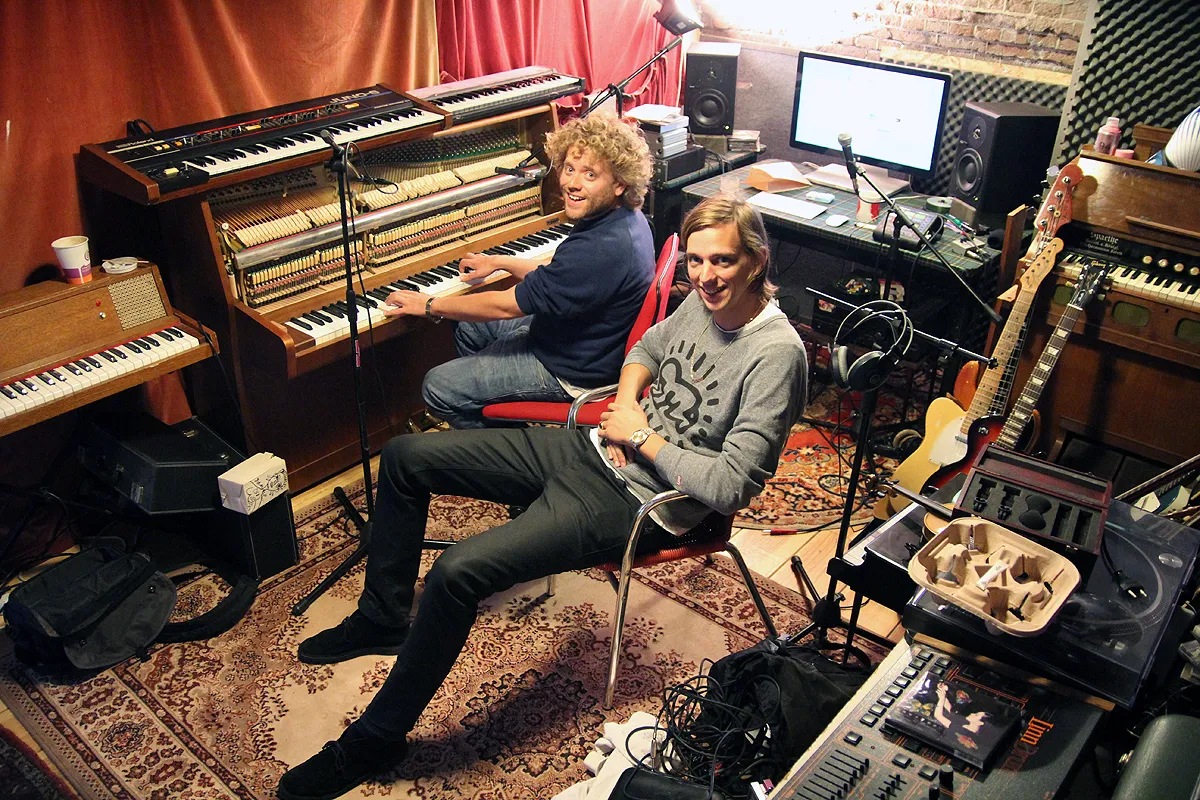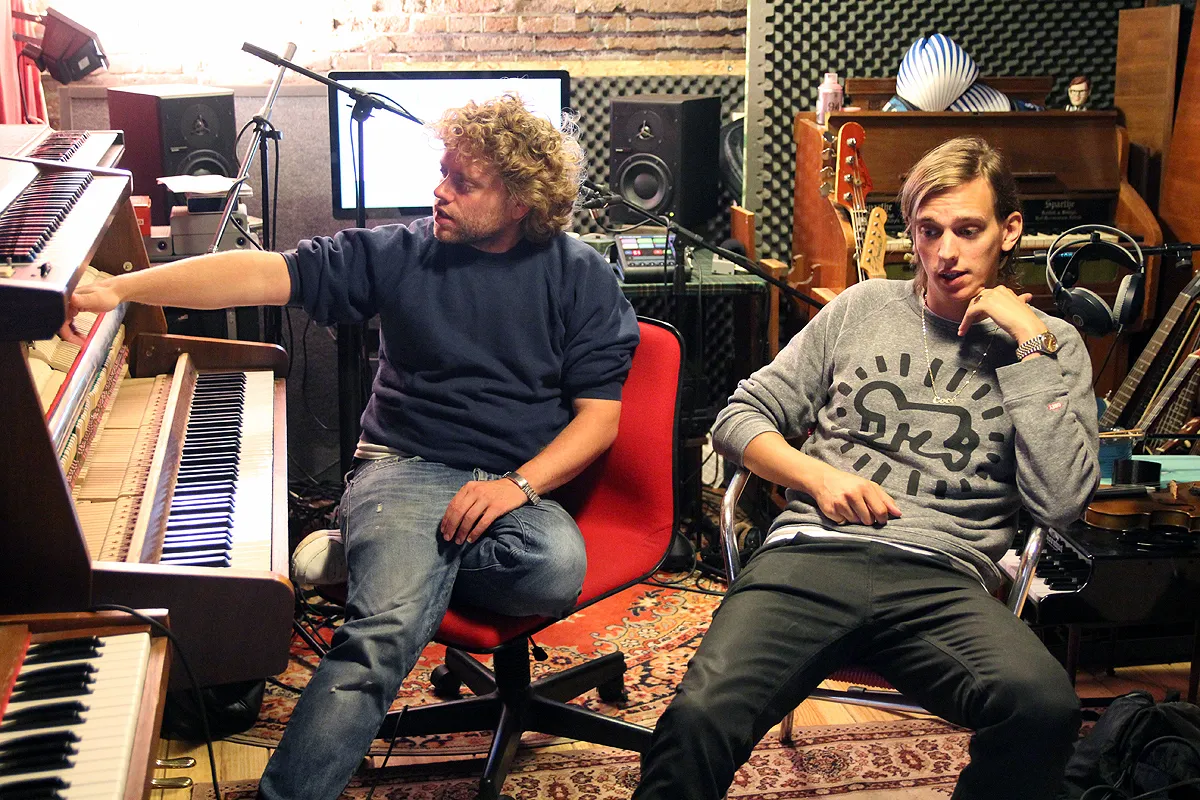 Volgens Pepijn Lanen, die als Faberyayo en als lid van De Jeugd Van Tegenwoordig door het leven gaat, moet je in een studio wel een beetje afgesloten zijn van de buitenwereld. “Een studio moet niet te gezellig en te gemakkelijk toegankelijk zijn, anders gebeurt er ook weer niks.” Zijn producer Tim Berkestijn, oftewel Benny Sings, vindt van niet. “In mijn nieuwe studio heb ik daglicht.” Lanen: “Nee, ik bedoel niet dat er per se geen licht mag zijn, maar het moet wel dof zijn. Voor akoestieke doeleinden.” Die akoestiek is nog wel een dingetje in de studio van Berkestijn, waar Lanen zijn album opnam. We zitten in Tussen de Bogen, op een steenworp afstand van Amsterdam Centraal. De ‘studio’ is een veredeld hok, volgestouwd met oude piano’s, waarvan het stenen plafond in een boog loopt. Elke vijf minuten rijdt met zeer veel geluidsoverlast een trein over. Hinderlijk, en ook niet bevorderlijk voor het opnameproces. Benny legt uit hoe ze tussen de treinen door werkten: “Gewoon, midden in een zin stoppen en dan weer doorgaan. Dat is hoe ik m’n laatste drie albums gemaakt heb.” Faberyayo: “Het was ook wel grappig. Ik ben niet zo’n heel goede zanger en soms moet je dan een tweede stem inzingen. Ik weet wel een beetje hoe dat werkt, maar het gaat niet natuurlijk en moet het wel onthouden. Dan had ik het net in m’n hoofd, kwam er een trein voorbij en moest ik weer wachten en opnieuw gaan zitten en dan ben je het weer kwijt. Maar dat maakt het wel extra bijzonder.”