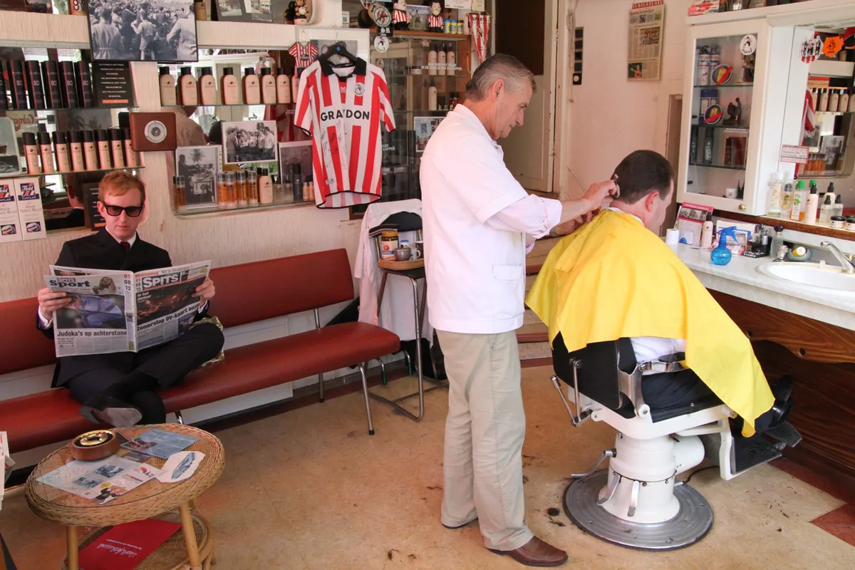 "Alles is oud bij mij. Mijn auto, mijn instrumenten, zelfs mijn koffiezetapparaat komt uit 1962", zegt Dave als we voor zijn kapper staan. Kapper Aad, of eigenlijk zou het woord barbier beter passen. Een ambachtsman in een kappershemd, met een zaak die sinds de jaren zestig niet meer veranderd is. "Ik zag je bij DWDD", zegt kapper Aad, een mooi oud geworden Rotterdammer, wiens zaak gevuld is met Sparta-parafernalia. Als Dave een voetbalfanaat zou zijn, zou ie uiteraard ook voor Sparta zijn, een club met stijl. "Vanaf nu kom ik elke maand mijn haar laten doen, Aad, we zijn huisband geworden bij DWDD." In dit deel van de stad woonde een groot deel van Dave's familie. Zelf woonde hij dus lange tijd in deelgemeente Hillegersberg. Maar wel in een flat, haast hij te zeggen. "Als je er nu op terug kijkt waren de jaren tachtig gewoon een uitvloeisel van de jaren vijftig. Wij hadden gewoon nog een zinken badkuip. Als je daar in ging was alles zeiknat. Bij onze flat kwam elke vrijdag een draaiorgel langs gereden, en dan gooiden de mensen echt geld naar beneden. Daar kun je je nu niks meer bij voorstellen. Je ziet wel meer van dit soort ouderwets ogende kapperszaakjes, maar meestal is dat sier. Kapper Aad is echt."