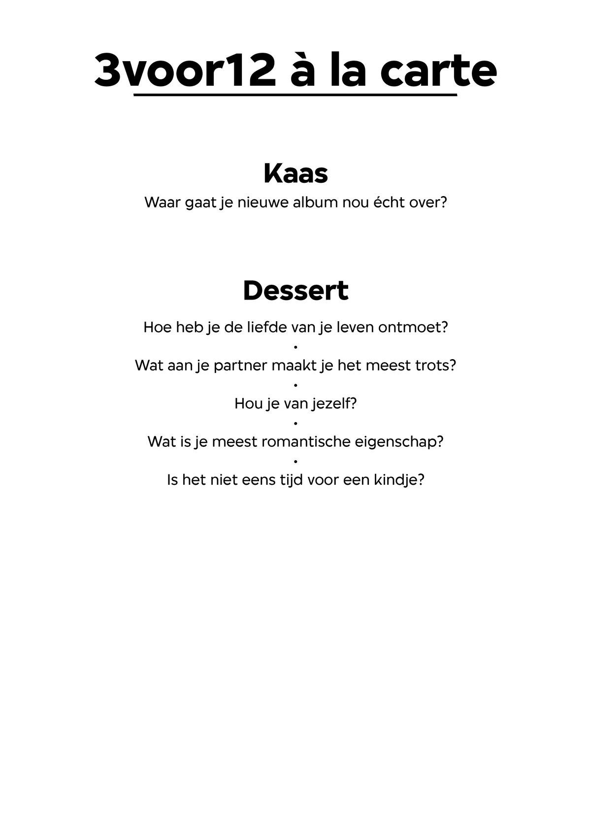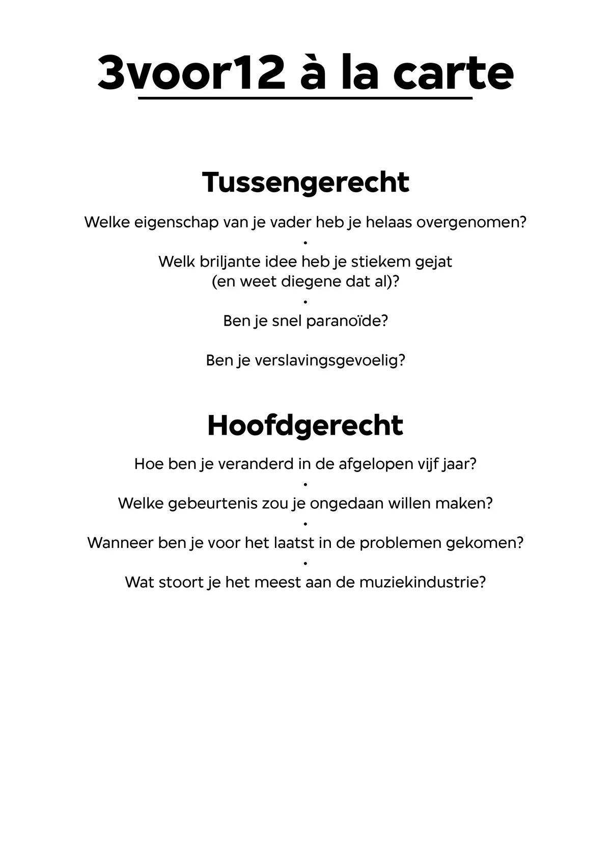 Hij leest de kaart. ‘Waar ben je het meest onzeker over? Dat is meteen de meest kwetsbare vraag, man. Vroeger zou ik dat niet snel doen, maar ik heb geleerd daar meer voor te kiezen.’