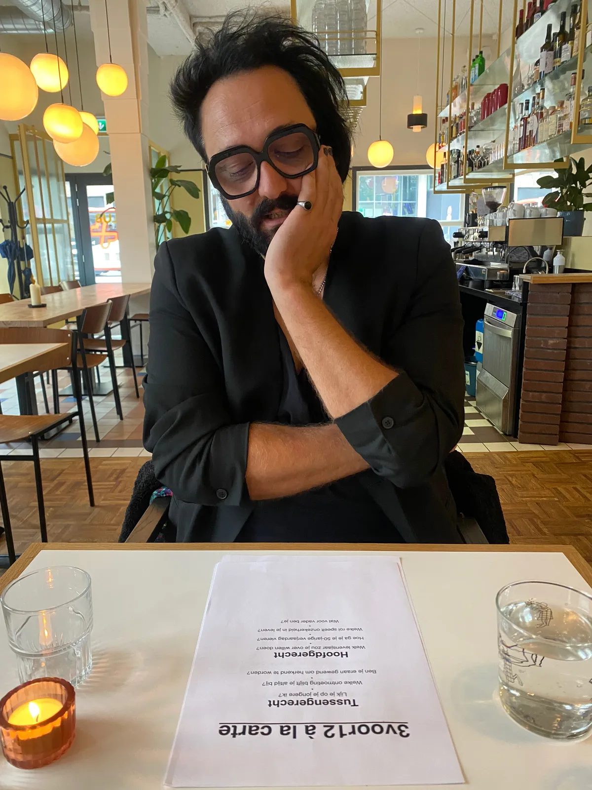 Dikke jassen hangen over de stoelen in het restaurant dat vandaag de nieuwe menukaart presenteert. De herfstige gerechten worden opgepoest en gefotografeerd voor de socials. Ook hier is het nieuwe jaargetijde niet meer te ontkennen. Voor Blaudzun is evengoed een nieuwe fase ingegaan. Hij heeft net de intensieve concertreeks Oscar met het Scapino Ballet in Luxor en Carré achter de rug. Hij kan zich nu volledig focussen op de release van Latter Days. Zijn zevende album, dat een week voor zijn 50ste verjaardag verschijnt, staat vol muziek die zich comfortabel voelt bij het bruin, geel en rood van het huidige seizoen. Latter Days zal tijdens de kaas worden besproken, maar eerst is het tijd voor een klein glaasje.