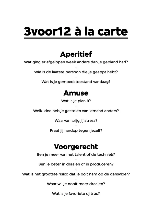 ‘Ik denk inderdaad dat je als dj uit kan blinken door talent. Welke keuze maak je, durf je te verrassen? Dat kan moeilijk als je je playlist helemaal voorbereidt, op key ordent en daar niet van afwijkt. Het wordt pas interessant als je dat wel doet. Ik vind het niet zo erg als een plaat niet helemaal recht ligt, als je kunt horen dat er flink gewerkt wordt. Dat mis ik soms wel, je hoort het te weinig, zeker op de plekken waar ik draai. Een dj als Ben UFO is er een meester in, die legt allerlei verschillende invloeden over elkaar tot iets heel eigens. En ja, soms gaat het fout, maar als het goed gaat: Holy shit.’