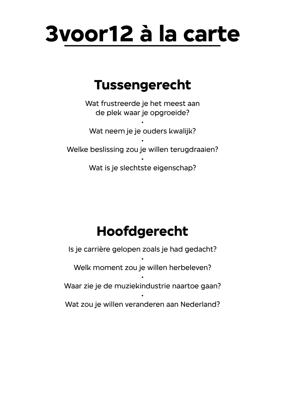 ‘Dit zijn echt goede vragen, man. De vraag die me het meest raakt is gewoon de eerste man. Is je carrière gelopen zoals je had gedacht? Nee, nee, nee. Ik heb eigenlijk vanaf het begin nooit gedacht dat dit een carrière-ding zou worden. Bij elke stap, voelde het gewoon zo: we gaan weer door. Ik heb dingen nooit zo ver uitgestippeld, het enige wat ik wist was dat ik de Ziggo Dome wilde uitverkopen. Dit album voelt als een nieuwe start, ik ga voor het eerst in een deal met een label waarin ik voel: de synergie klopt.’