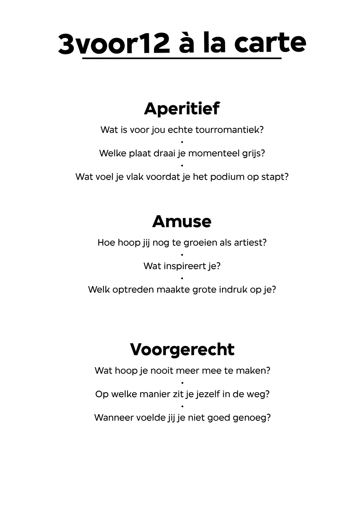 De Pip Blom-band is net terug van een forse tour door Engeland, er is een derde album met bijdrages van Franz Ferdinand-frontman Alex Kapranos en Personal Trainer-zanger Willem Smit (tevens de vriend van Pip) en na het vertrek van drummer Gini Cameron stortte de Blom-band zich nog meer op synthesizers en drumcomputers. Genoeg te bespreken dus in de A la carte met Pip: wij maakten een menukaart vol vragen, zij kiest daar de vragen uit die haar het lekkerst smaken.