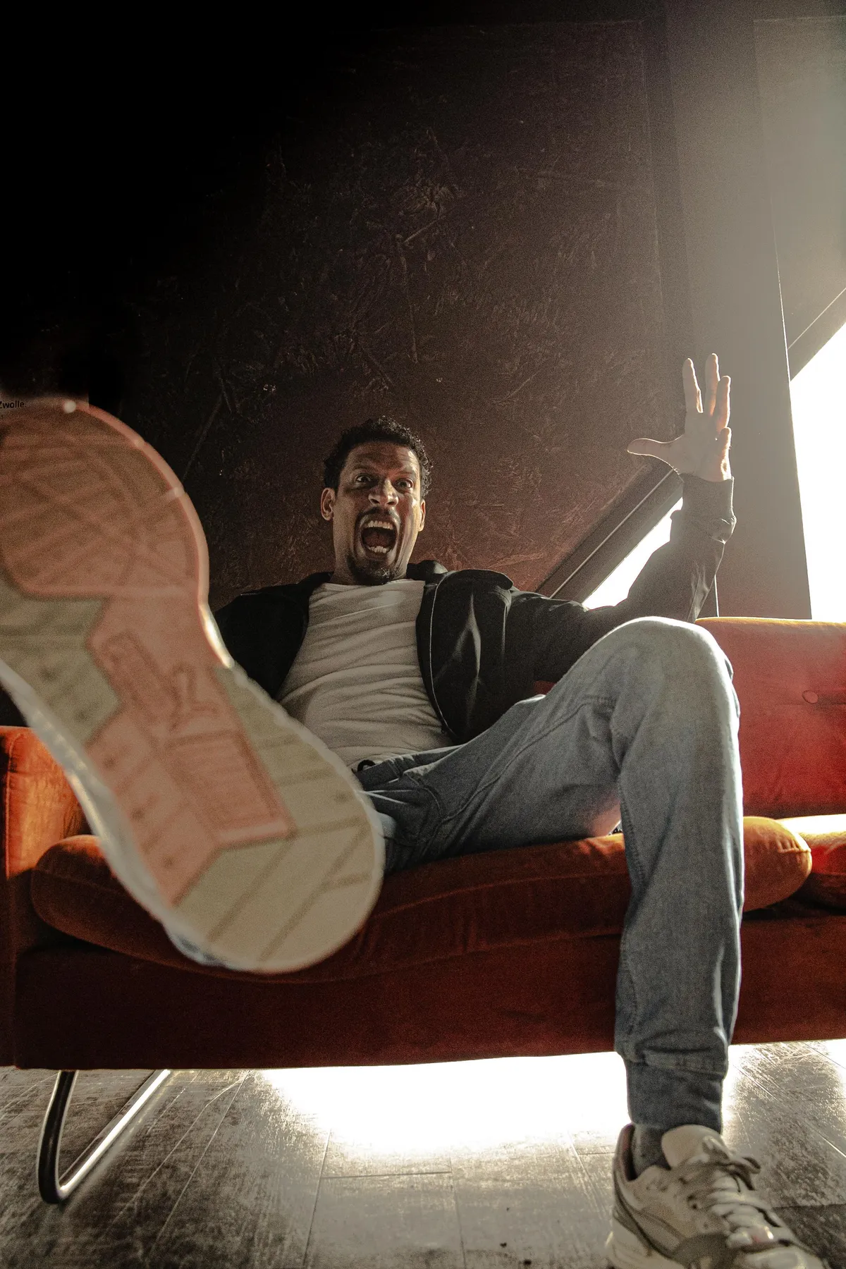 ‘Vroeger ging ik regelmatig naar de sauna, maar mijn huidige vriendin vindt dat niet leuk. Ik doe dat niet alleen, want dan voel ik me te zwart, te man, te alleen. Ik had dat ook met yoga. Een jaar geleden ging ik daar voor het eerst heen, gewoon in mijn sportschool. Ik zal het nooit vergeten: ik kom daar binnen, leg mijn matje neer. Zegt de vrouw naast me: zou je misschien aan de andere kant van de zaal willen gaan liggen? Ik schrok. Ok, misschien lag ik in haar aura ofzo? Dus ik loop naar de andere kant van de zaal, leg mijn matje neer, zegt een andere vrouw: kun je je matje iets verder schuiven? Ik dacht: wauw. Stond op het punt mijn spullen te pakken en weg te gaan. Ik voelde me heel kut, maar ik ben blijven liggen. De week erop was de drempel heel hoog maar ben ik wel gegaan. Ik ben helemaal vooraan gaan liggen, zo dicht mogelijk bij de coach, zodat niemand zich bekeken voelt. Ik weet niet of je wel eens yoga hebt gedaan, maar al die poses zijn natuurlijk best wel lichamelijk. Ik kan me ergens wel voorstellen dat je als vrouw denkt: ligt ie me nou in mijn hol te kijken? Ik ben blij dat ik doorgezet heb, want yoga maakt me heel rustig.’
