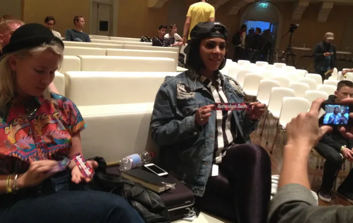 Felix Meritis is op de zaterdag van ADE ingeruimd voor jonge producers en artiesten. Alle conferenties hangen samen met talent ontwikkeling, zo ook het gesprek met Jasper Goggins en Paul Devro van het innovatieve Amerikaanse label Mad Decent en The Partysquad. Het duo maakte een Amerikaanse release mogelijk van het Amsterdamse duo en ziet hen als dé staalkaart voor de hybride pop- en dancemuziek waar ze naar op zoek zijn. Dus waar anders dan vanmiddag sla je je slag met je vers gebakken demo? Goggins is resoluut: "Ik hou er niet van hier ter plekke met de artiest een demo te beluisteren".