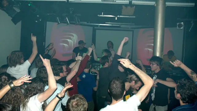 We begeven ons enige tientallen deuren verder, waar de OneFourOne-vloer aan de Mega Whut?! party van FreshCotton en Drie Keer Niks is. Belangrijkste aanleiding is dat Nobody Beats The Drum live speelt, en die kregen al een puike recensie van de Paradiso-show woensdag op het feestje van Lektroluv. Het kost wegens een eindeloze garderobe-chaos (jas ophangen verplicht) en een hufterige portier (weiger-modus) veertig minuten om binnen te komen, maar dan heb je ook wat. De halfvolle zaal wordt volledig platgepompt door producers Sjam en Jori, terwijl vj Rogier de visuals van drie schermen laat spatten. Zelfs een Nobody Beats The Drum-remix van Giovanca klapt er keihard in.