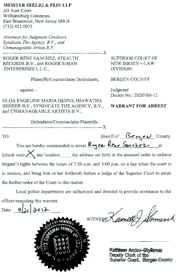 Tot uitbetaling is het nog niet gekomen en volgens Heijns is het door de rente opgelopen tot een half miljoen dollar. Omdat Sanchez vooral in New Jersey bezittingen heeft, besloot de Nederlandse in de Verenigde Staten verder te procederen. "Daar zit het meeste van zijn bezit, waaronder een huis, dus daar valt het meest te halen." De Amerikaanse justitie stelde haar ook in het gelijk en vaardigde 21 september een arrestatiebevel uit, dat nu de Stealth Records website siert.
