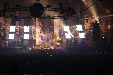 Visueel gezien gaan de remmen nu echt los. Zodra Slims set van start gaat wordt er, alsof het nog niet warm genoeg was, vuur gespuwd en de rookmachine wordt ook niet onbenut gelaten. Blinkvanger is de discobal die op momenten naar beneden komt. Het publiek probeert deze met alle macht aan te raken. De lichtshow wordt op deze wijze op een extra impuls gegeven doordat de lasers laag boven de zaal gereflecteerd worden tegen de discobol.