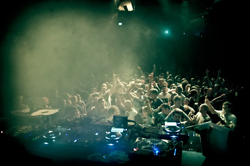 Om klokslag 22.00 uur een danceparty proberen te enteren is sowieso een slecht plan en dat blijkt ook nu: hoewel de muziek al op gang komt, is het MC Theater pas dertig minuten later klaar voor #ADE12. Geen probleem, want meer dan tien man wil zo vroeg toch niet naar binnen. En zo staan openers Jan van Kampen en Jasper Wolff & Maarten Mittendorff voor goeddeels lege zalen te draaien. Lullig, maar dat weet je vrijwel zeker als je voor die openingsspot geboekt wordt. Dekmantel-resident Van Kampen staat intussen wel een lekkere groovy en soulvolle technoset ten beste te geven en het Amsterdamse duo heeft in de kleine zaal nog wat meer snelheid en feest te pakken.