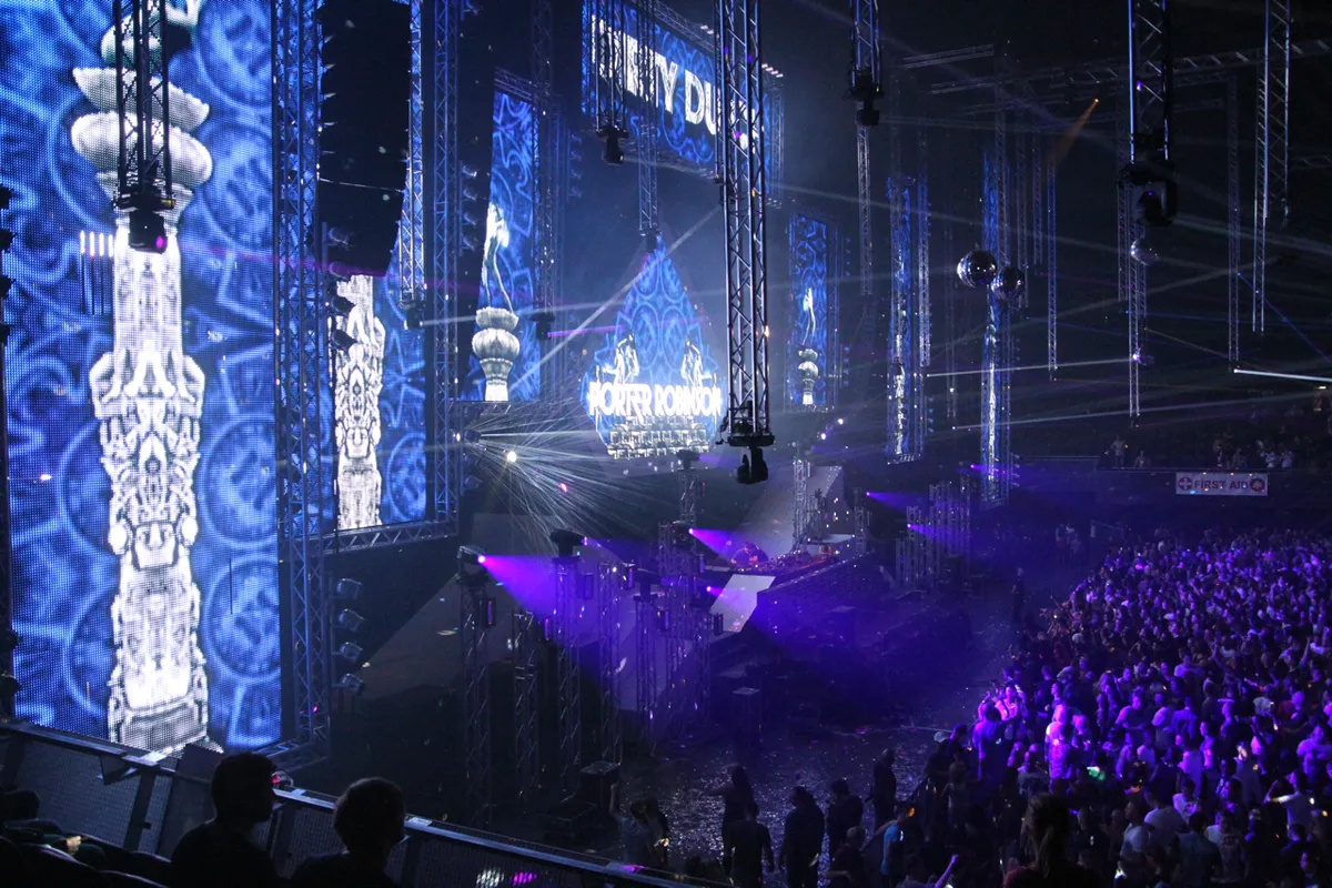 Dat begrijpt Porter Robinson als geen ander. De jonge Skrillex-protege mag een uur na Chuckie aantreden en pakt alles en iedereen - ook de gastheer - in met een razende electrohouse/dubstep zapset. In drie kwartier jaagt hij er tientallen platen doorheen. Opbouwen doet hij amper, droppen voortdurend, met precies genoeg variatie om het spannend te houden. Hij draait tunes van onder meer Skrillex, Wolfgang Gartner en Qulinez, maar maakt het meest indruk met een serie eigen producties aan het eind. Het is een boeiende cross-over, die deze Porter Robinson de komende jaren wel eens naar de absolute wereldtop zou kunnen katapulteren. Eindelijk heeft hij de zaal volledig in beweging. Hij knalt hier in elk geval genregenoot Knife Party keihard van de troon. De spierballenhelft van het ervaren duo kiest voor meer house dan op Lowlands, waar bij elke nieuwe tune de tent ondersteboven ging. Nu dat niet automatisch gebeurt oogt het routineus, voorspelbaar en ongeïnteresseerd. Slordig ook. Een meisje dat een kusje komt halen bij mr Knife Party krijgt een subtiel elleboogje omdat meneer zojuist de mix van zijn eigen hit Internet Friends verknald heeft. Gelukkig heeft ie een aantal tunes die het werk voor hem doen, waaronder eigen hit Bonfire naar het einde toe.