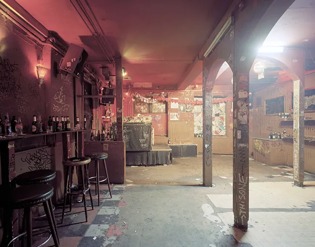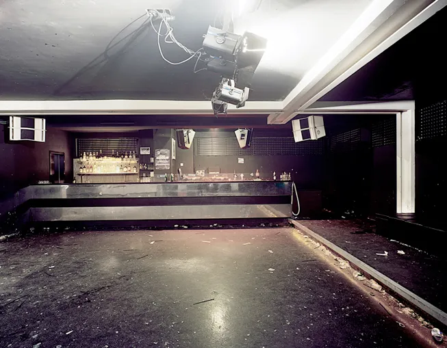 Gieseman heeft zijn diploma nog niet eens op zak maar exposeert met Schwarz voor het eerst buiten Duitsland. Alle 14 foto's zijn interieurshots van voormalige kelderbarretjes, fabrieksgebouwen of communistische conferentieruimtes. De val van de muur heeft vanaf eind jaren 80 een onuitputtelijke bron aan nieuwe feestlocaties opgeleverd. Al die plekken waar Giesemann de laatste 10 jaar van zijn leven gedanst en gedraaid heeft zijn nu dus vastgelegd. 'Het lijkt alsof ik overal kind aan huis ben maar vind het project lastig. Clubs hadden soms moeite met de voorwaarde van het moment waarop we wilden schieten. Het bevroren interieurshot zonder bezoeker of schoonmaker vergt een perfecte timing en productie.'
