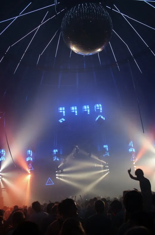 Mirko is de beweeglijke van het stel, Stacey (met kenmerkende Edgar Davids-bril en staartje) veert soepel op één voet op en neer. Beiden hebben ze een platenkoffer onder en laptop naast zich, de mixer is de gemene deler. Samen switchen ze veelvuldig tussen groovy, techno met een haast tropisch, zwoel tintje en rechtlijniger beukwerk. Dat werkt redelijk in de voor tweederde gevulde Gashouder, maar ook niet meer dan dat. Je voelt dat de set en de avond (al 4,5 uur bezig) nog in de opbouwfase zitten. En de licht- en vuurshow (hét Awakenings handelsmerk) ook. In een stevig slot knallen de heren om en om vanaf een kale ritmische basis die pitch omhoog tot standje euforisch.