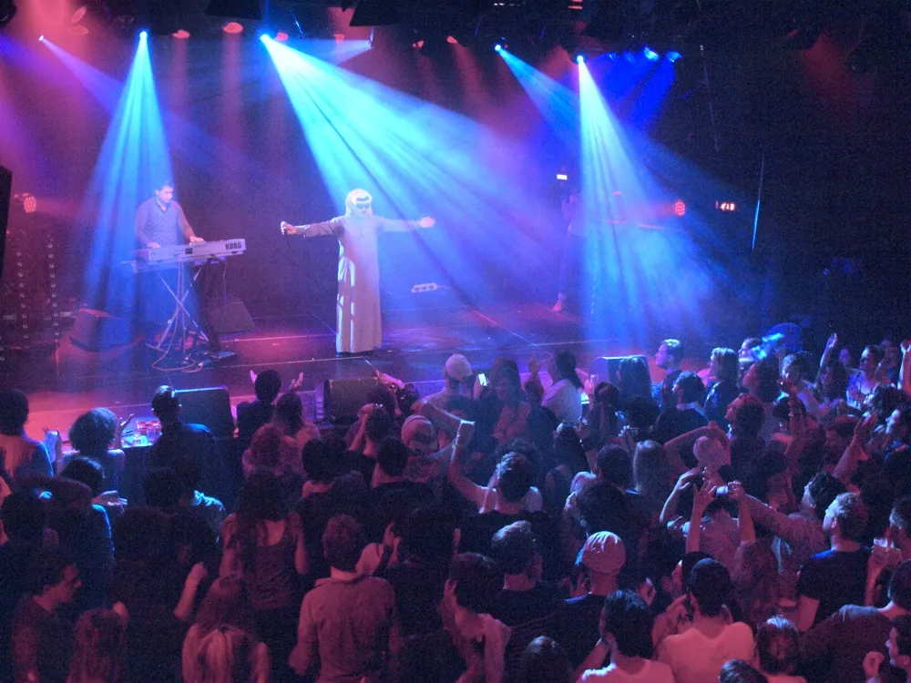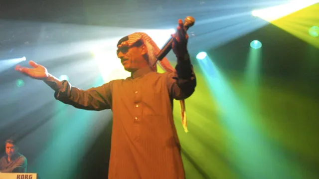Iedereen die in de line-up van ADE verlangde naar meer variatie stond met de kont tegen elkaar geparkeerd in de oude zaal van de Melkweg. De Syrische Omar Souleyman was al een paar keer te zien in Amsterdam, maar reisde voor het eerst af voor ADE. Met zijn verschijning is hij een frisse wind: dikke zwarte bril, roodwitte hoofddoek, traditioneel Arabisch mannenkostuum en een super nonchalant podiumdier tot in een uiterste perfectie. Zuinig van links naar rechts schuifelen over het podium, op het juiste moment een handje naar de gretige voorste rij en zijn 'lijfkreet' yalla yalla als de beentjes even dreigen vast te lopen. Allemansvriend en onaantastbaar tegelijk. We krijgen maar 45 minuten om verliefd te worden maar dat is ook genoeg.