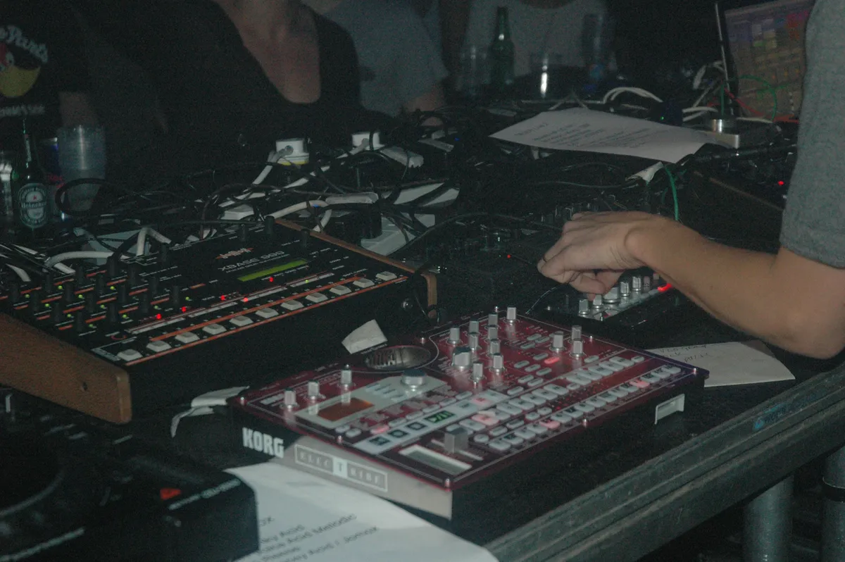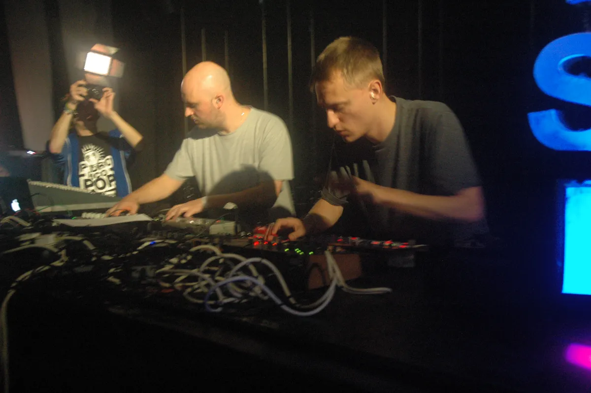 De opwinding is groot voor iets wat belooft een spektakel te worden. TR\\ER is het Nederlandse livedebuut van Truss en Tessela, die behoren tot de voorhoede van wat een bruisende en mateloos interessante sound is. Een combinatie van snoeiharde techno, breakbeats, oude rave en meer. Tessela meldde zich nadrukkelijk met zijn doorbraak 'Hackney Parrot', en releasede recentelijk het absurde 'Nancy’s Pantry'. Truss timmerde onder zijn eigen naam al een tijdje aan de weg, maar brak eigenlijk pas echt door toen hij tijdelijk alter ego MPIA3 aan nam, waarmee hij een paar hardvochtige tracks uitbracht die zich laten omschrijven als trage (acid)techno met gabber-invloeden. Oh ja, en het zijn nog broers ook. Vanavond hebben ze een groot arsenaal aan analoge apparatuur met zich meegebracht. Na een kort intro stort het duo meteen al een onverbiddelijk harde kickdrum over het publiek heen. De geluidsman heeft ook begrepen dat dit de act is waar het om gaat en schroeft het toch al niet te versmaden volumeniveau nog enkele tandjes omhoog. Wat een moddervette set leveren deze mannen af. In acid gedrenkte, distorted, trage ramtechno. En nu komt er misschien een opmerking die niet iedereen gaat begrijpen, maar ondanks het feit dat dit spartaans hard en lomp is, is het toch afwisselend en zeker niet zomaar ‘dom beuken’. Kijk: zo’n collega-act als Karenn (een eveneens live-act bestaande uit Blawan en Pariah) gaat een uur lang voor een voornamelijk geïmproviseerde full-on 140 BPM-set, vrij rechtlijnig en door het hoge tempo weinig ruimte voor finesse. Het tempo bij dit TR\\ER ligt veel lager, vaak onder de 100 BPM, waardoor er in de sound zelf meer ruimte is voor variatie. Zo komen er af en toe vlagen hardcore en eurohouse voorbij. Nog een verschil is dat TR\\ER echt met een setlist werkt, echt nummers brengt met climaxen, in plaats van zo’n rechte lijn van Blawan en Pariah. Hoogtepunt van de set is dat weergaloze ‘Nancy’s Pantry’ van Tessela, waarbij het even lijkt alsof Rhône Warehouse in een zwart gat opgeslokt wordt. Echt heel goed.