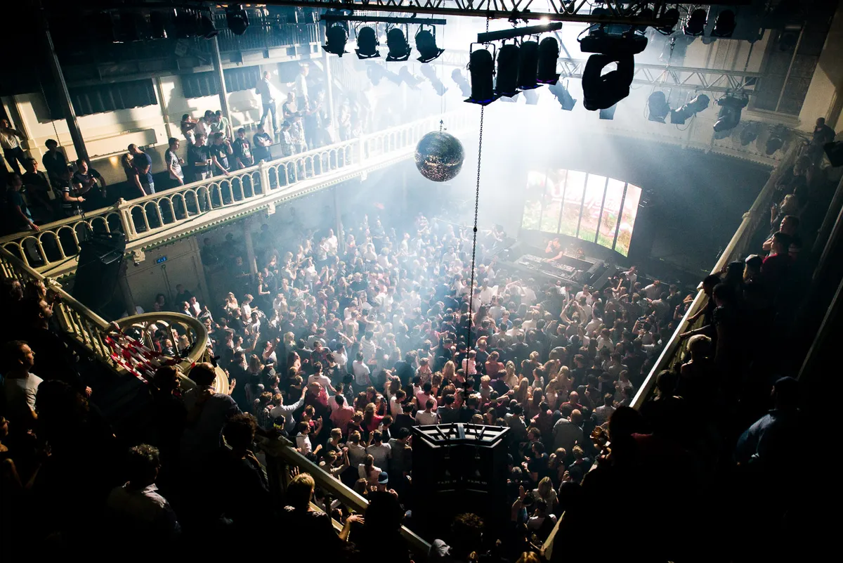 Shoutout naar het bewegende lichtplafond van de Rabozaal. Dat ziet er echt mega awesome uit. Nog meer special guests in de Melkweg: Feest DJ Ruud bij Partysquad. (Christiaan Walraven)