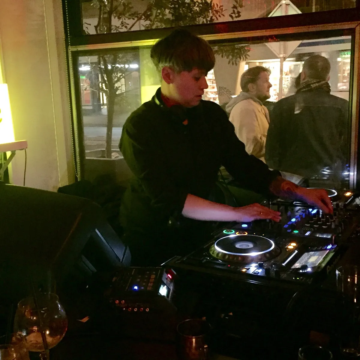 De SoHaSo/ Correspondant showcase in cocktailbar Feijoa begon als gemoedelijke borrel, maar bij de laatste plaat van Nuno dos Santos b2b met SB gooiden de twee het volume maar eens flink omhoog. Dat miste zijn uitwerking niet, bij voormalig Trouw-resisdent Tsepo staat het ramvol en met analoge houseplaten van o.a. Bicep houdt hij de sfeer erin en de kou eruit. (Sjoerd Huismans)