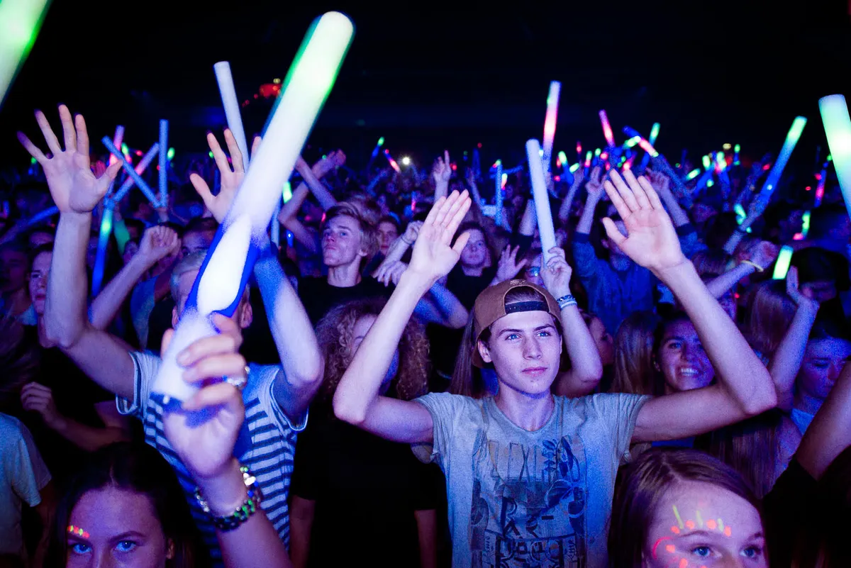 "Jongens, jongens!! Die glowsticks moeten naar áchteren, niet naar voren!", roept de MC die genoeg heeft van al die staven naar zijn hoofd, maar duidelijk geen kenner is van 'reverse psychology'. (Bas van Duren)