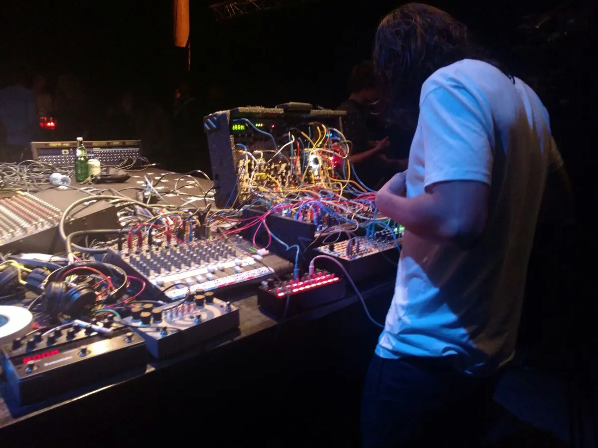 Het heeft altijd iets magisch, een tafel vol drumcomputers en eindeloos veel kabels. Want wat maakt nu precies geluid? Wat gebeurt er als je een kabeltje ergens in- of uitplugt? Joost mag het weten, maar goed klinkt het wel.