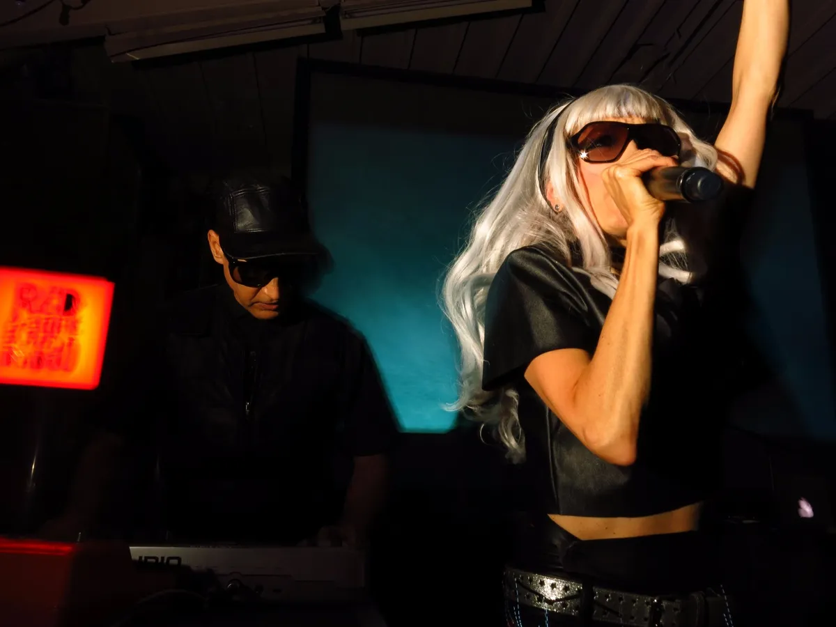 Bij Crash Course in Science is het anders. Was er bij Severed Heads - op de visuals na, geen sprankje podiumpresentatie te bekennen, het Amerikaanse trio heeft er werk van gemaakt. Allemaal grotendeels in het leer gehuld, de zangeres met grote blonde pruik, de zanger met grote lasbril en even later een zonneklep met LED’s aan de onderkant gemonteerd. En dan worden er af en toe ook nog attributen als lichtgevende handgranaten bij gepakt. Samen met synths die constant uit de bocht vliegen en waarop nog extra ruis wordt losgelaten en de knetterende elektrobeats is dit indrukwekkend. De knievallen van de zanger na elke uitval zijn charmant. En de zangeres die theatraal over de grond kronkelt geeft alles nog meer intensiteit. Het blijft allemaal wel een beetje hangen in charmante kitsch. Een klassieker als ‘Jump Over Barrels’ klinkt danzij die gekke springerige feel nog steeds fris, maar het grootste deel heeft de tand des tijds toch wat minder goed doorstaan. Juist ook door de doordachte aankleding, die alles ineens tot een verkleedfeestje maakt. Daarnaast klinkt het nieuwe materiaal weer als aftreksels van het oude werk. Leuk om eens gezien te hebben, maar het haalt het niet bij de ongekende houdbaarheidsdatum van Severed Heads een uurtje eerder.