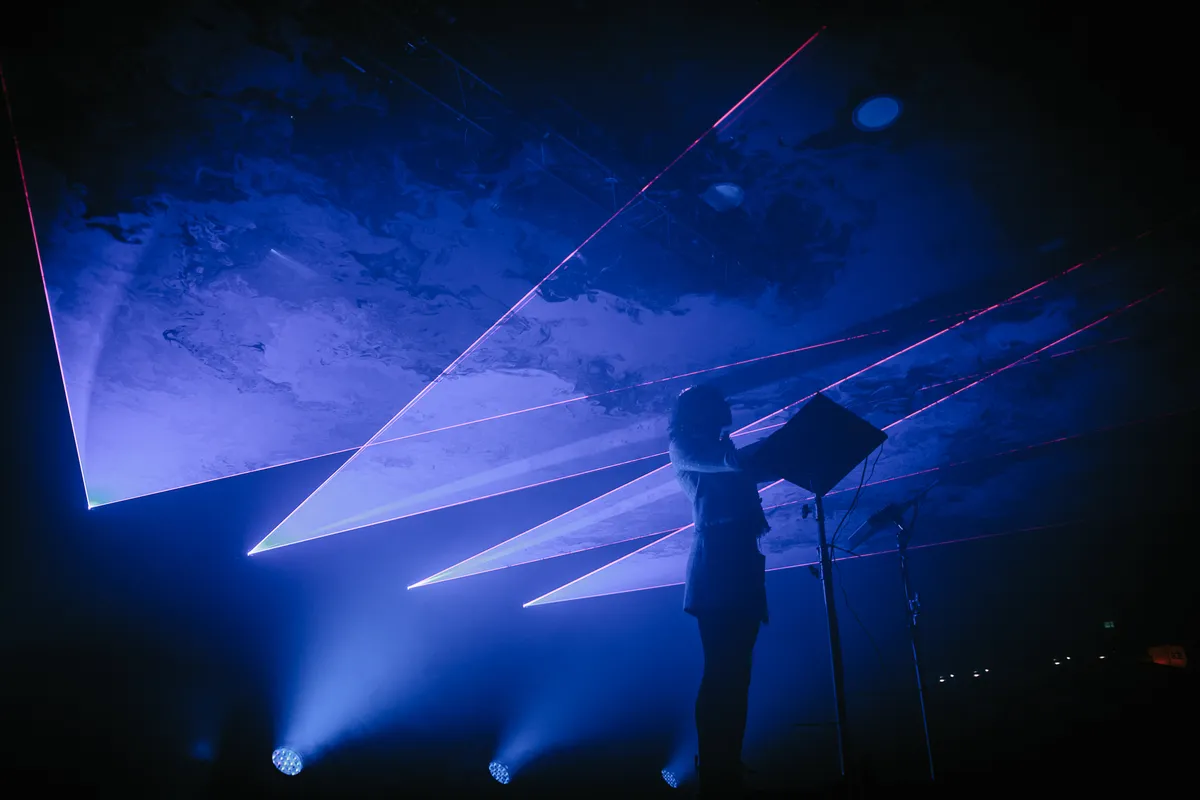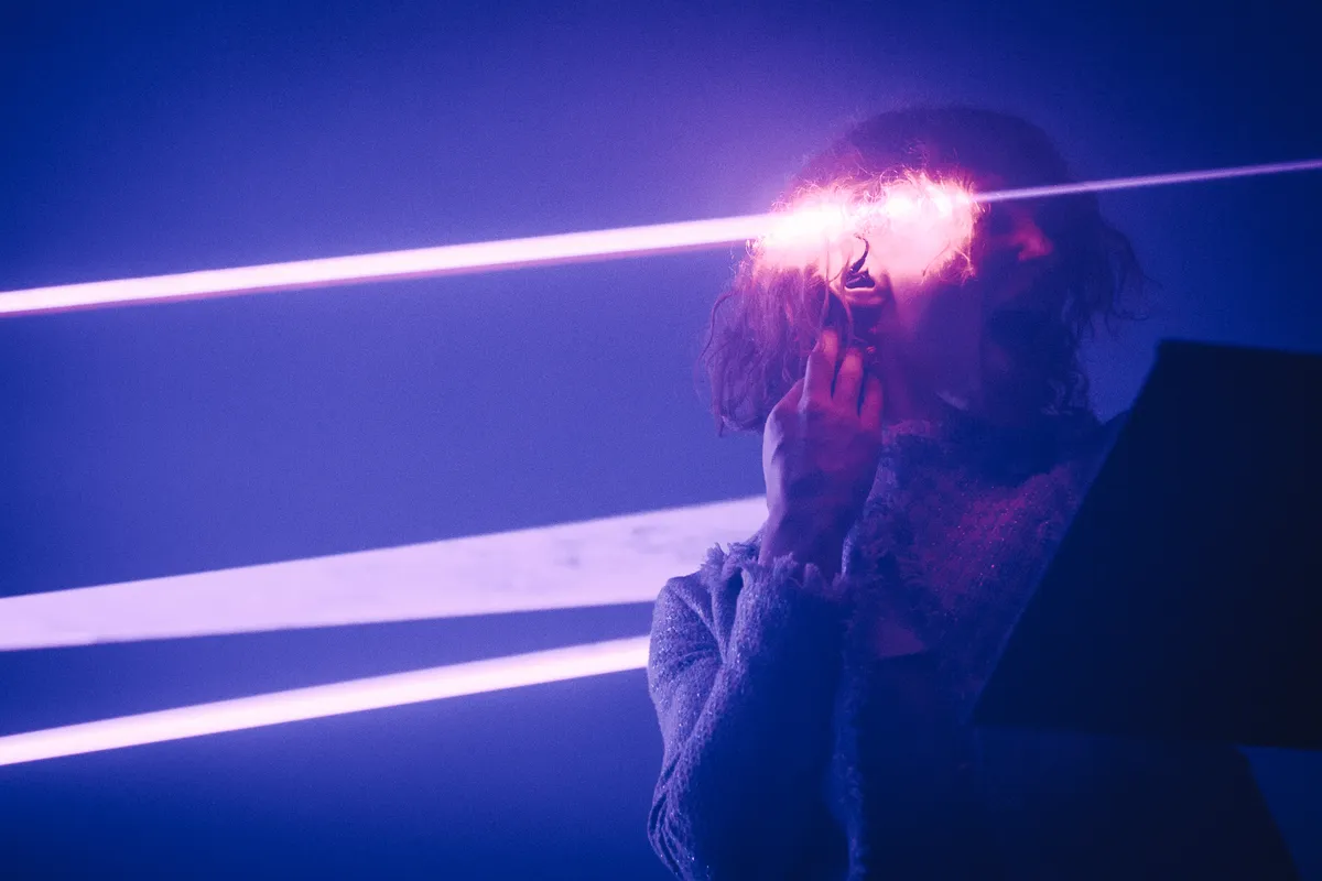 Dat is de magie van SOPHIE: meng de weeïge nostalgie naar een net iets te rooskleurige versie van de late nineties met een diepe existentiële crisis, en je hebt de soundtrack van een generatie. Die generatie is goed vertegenwoordigd in de Tolhuistuin: jonge twintigers in doorzichtige truitjes met gebleekt haar en een oorbel duwen hun armen in de lucht bij het eerste gekrijs dat SOPHIE uit haar apparatuur trekt. Waar ze op Lowlands nog een hybride set gaf, komt er vanavond geen draaitafel aan te pas. Slechts twee mysterieuze controllers, aan het oog onttrokken door zwarte lessenaars. Zelf is ze ook moeilijk zichtbaar door de enorme bak rook en lasers (!) die is opengetrokken.