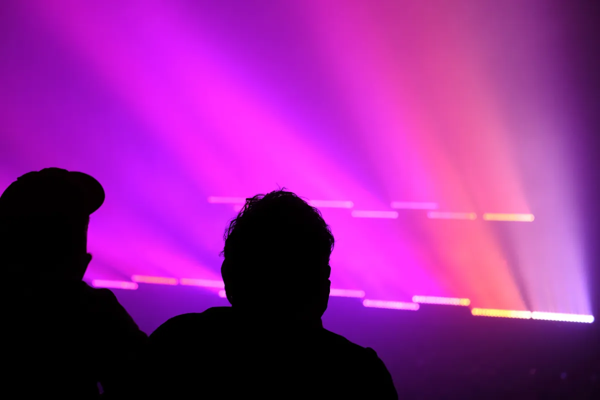 Na de pauze keert het noorderlicht-thema terug. Tim Hecker heeft het zelf meegenomen in de vorm van tientallen op het podium geplaatste lichtbakken die diagonale lijnen door de rook naar het plafond trekken. Zelf blijft de Canadese componist haast onzichtbaar, al kun je in de gekleurde mist constateren dat hij tegenwoordig een paardenstaartje heeft.