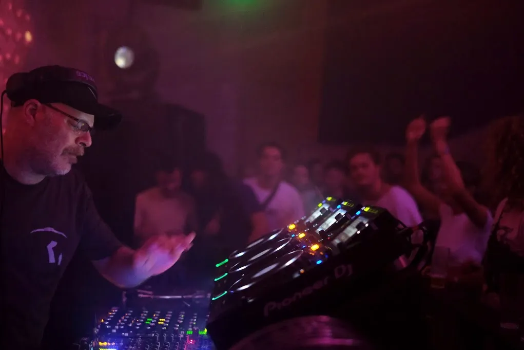 Zaterdag was de Radion zo goed als uitverkocht. Op zondag is de kans om binnen te komen groter, al wordt in de loop van de middag je dansplek wel steeds kleiner en is het dringen in de twee zalen op de bovenverdieping. In de ene staat de Zuid-Amerikaanse Duitser Valentino Mora een veenbrand op te stoken met een technoplaat van Function, in de andere heeft Vladimir Ivkovic zojuist een tandje bijgeschakeld. Want in zijn geval betekent dat we van 100 naar 101 beats per minuut zijn gegaan. De resident-dj van het Düsseldorfse Salon des Amateurs maakt zelden haast in zijn sets en doet dat ook vandaag niet. Hoe trager de beat over de vloer sleept, hoe zwoeler de sfeer. Iemand als I-F (die zijn baard trouwens heeft verruild voor een discosnor) weet dat ook. Vandaar dat de Haagse discobaas het laatste deel van Ivkovic’s set rug-aan-rug draait met de Joegoslaaf. Waarna I-F zijn eigen set inluidt met een oudje van Depeche Mode. De eerste shirts gaan uit.