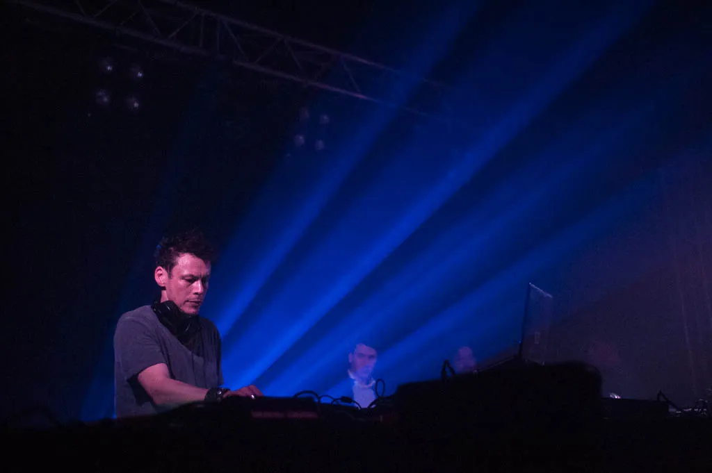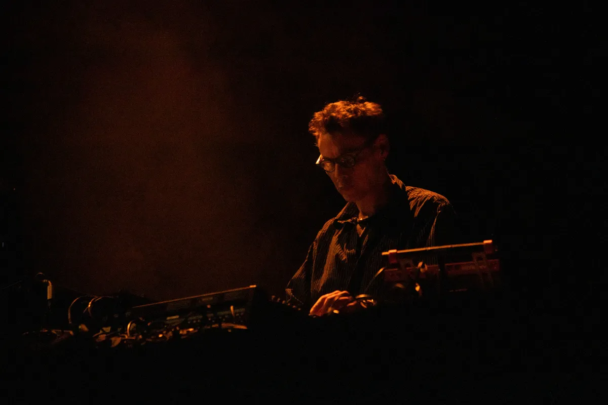 Een boel van zijn The 7th Plain-tracks zijn werkelijk magistraal. Je hoort het vanavond: dromerige, zwellende synths, die ingetogen, metaalachtige drumprogrammering. ‘I Think I Think Too Much’, met zijn krakende vocalsample, klinkt dan weer alsof het een radiosignaal oppikt vanuit de cockpit van een raket. Het roept een stroom aan associaties op: een raketlancering, een kosmische ruimtetrip. Toch is het lastig om daarin mee te gaan, vanwege die twee moderne dansers op het podium. Natuurlijk, muziek en dans kunnen elkaar versterken. Maar dat is nu niet geval. Die dansers zijn ontzettend goed, daar niet van. Maar ze blokkeren toch vooral het eigen voorstellingsvermogen.