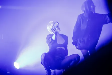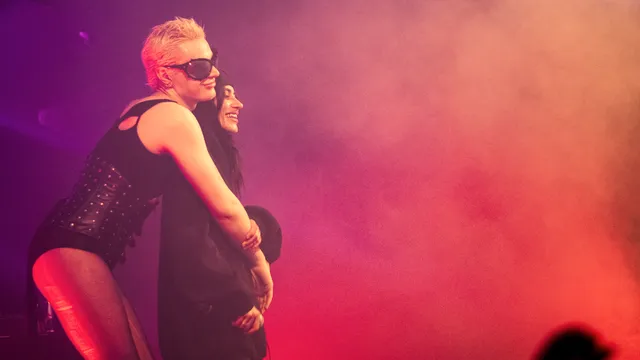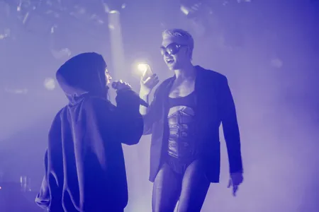 Aan de andere kant van 't IJ hebben zich op donderdagavond een hoop hippe Gen Z’ers verzameld in Parallel voor de tweede dag van Amsterdam Dance Event. Allemaal uitgedost in strakke hemdjes of mesh topjes, elk met een vlot montuurtje in het haar en een Club Mate in de hand. Sommigen met minirokjes en kniehoge laarzen, anderen in spijkerbroeken die expres meerdere maten te groot is. Ook wij hebben geprobeerd deze dresscode enigszins aan te houden, omdat we niet de vreemde eend in de bijt willen zijn voor COUCOU CHLOE’s optreden. De Franse zangeres/producer maakt duistere, experimentele elektronica met vleugjes pop, trap en hiphop, maar bovenal: een flinke dosis sex-appeal. Ze opereert een beetje in dezelfde mysterieuze hoek als de Engelse popnymf Shygirl (beiden staan onder contract bij Sega Bodega’s label NUXXE) en kan rekenen op een hoop fans die zichzelf identificeren als queer.