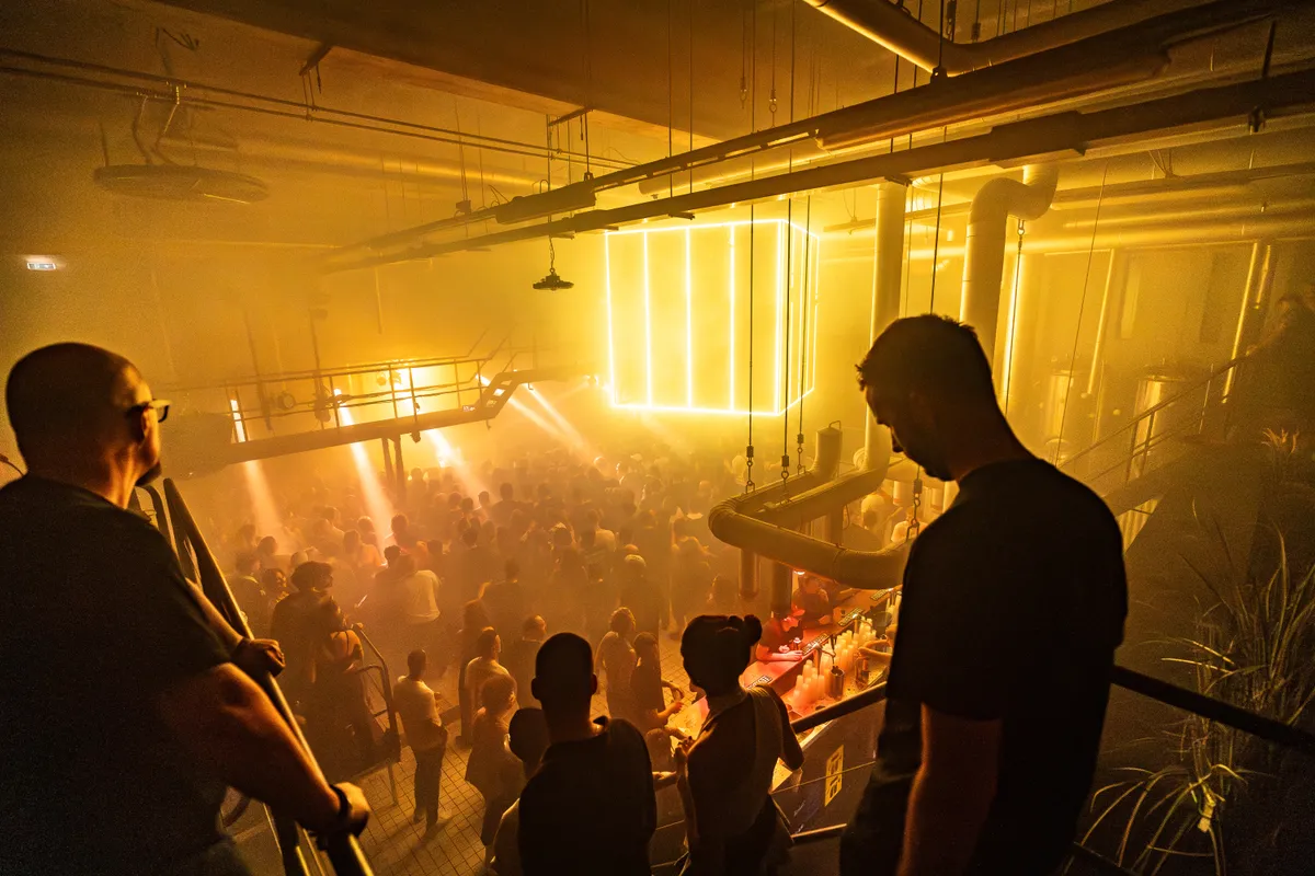 Wie staat nog meer op de gastenlijst? De Rotterdamse Megan Leber – bijgenaamd ‘The Queen of Restraint’ – is van de partij. Ze draait een niet al te terughoudende openingsset vol industriële rolling kicks en trippy predator-geluiden. Salome en CEM sluiten rug aan rug af. De twee zijn bepaald geen vreemden van elkaar, als respectievelijk resident en mede-oprichter van het Berlijnse queerfeest Herrensauna. Dit zijn vast niet de eerste peuken en fritz-cola’s die ze in een booth met elkaar delen. De Berliners gaan kneiterhard rechtdoor, maar gooien om de paar tracks een bizar idee bij elkaar over de schutting. Viel Ernst en gekke bekken trekken: het vat de avond goed samen.