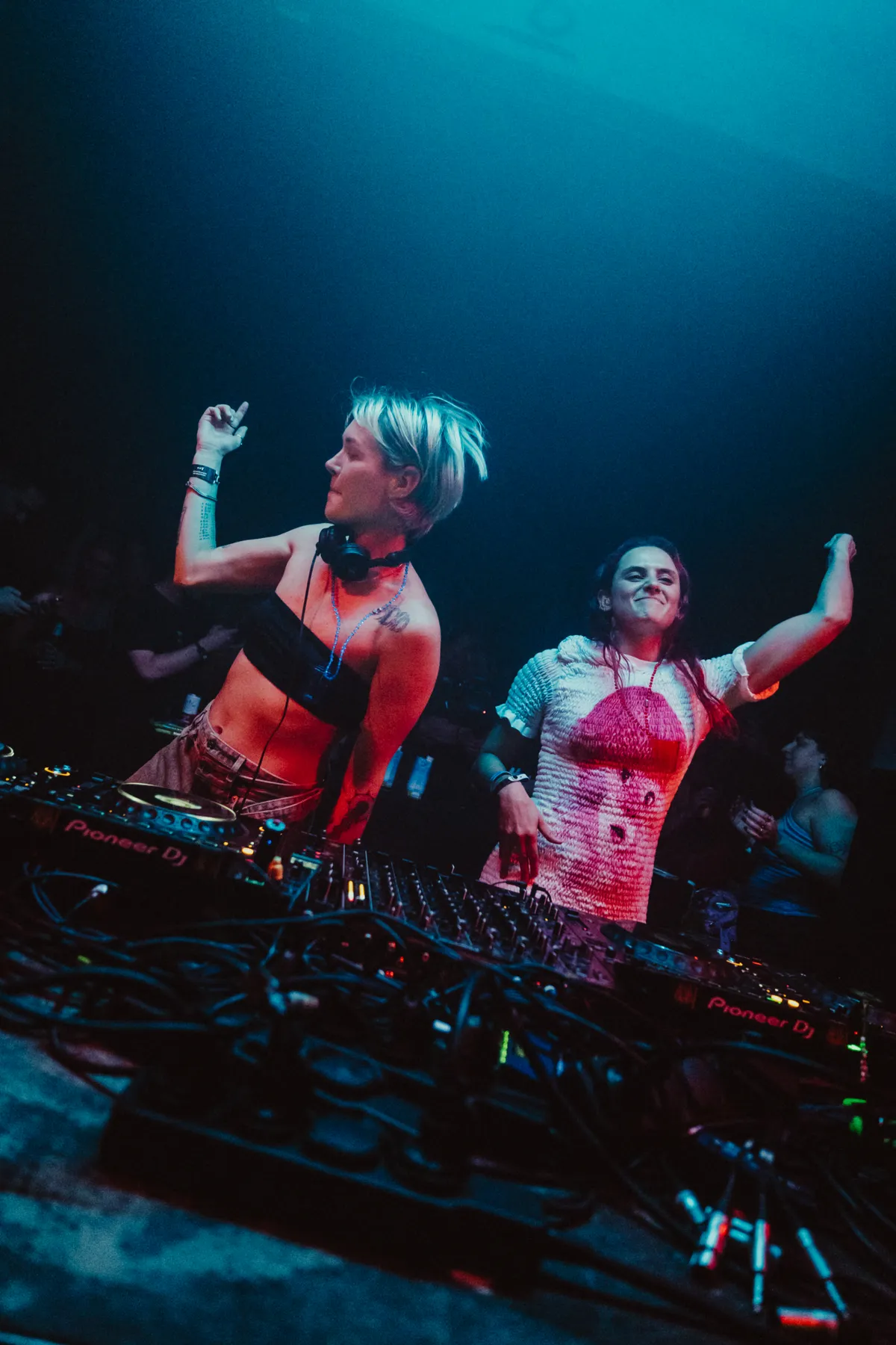 ‘Please welcome… my mom!!’, roept Kiki in de microfoon. Ja, echt. De eerste b2b van de dag is haar bloedeigen moeder. Zo lief hoe ze allebei stralend achter de draaitafel staan en samen uitgelaten dansen. Ook mega cute hoe Kiki haar moeder soms voorzichtig probeert te corrigeren: 'Ja, nú dat knopje’, zie je haar uitleggen, en gniffelt ze wanneer ze net een tel te laat is. Ach, het maakt ook allemaal niet uit, het is Kiki’s feestje en iedereen weet ‘t. Ze heeft voor de gelegenheid al haar A-list dj-maatjes uitgenodigd. Marlon Hoffstadt staat achter de booth shotjes uit te delen, Raum collega’s Bashkka en Sedef Adasi zijn van de partij en Patrick Mason staat zich ondertussen uit te sloven met zijn dansmoves op de grote boxen bij het publiek. Deze hele avond voelt als één grote viering van haar carrière en die vibe gonst de hele avond door de zaal heen.