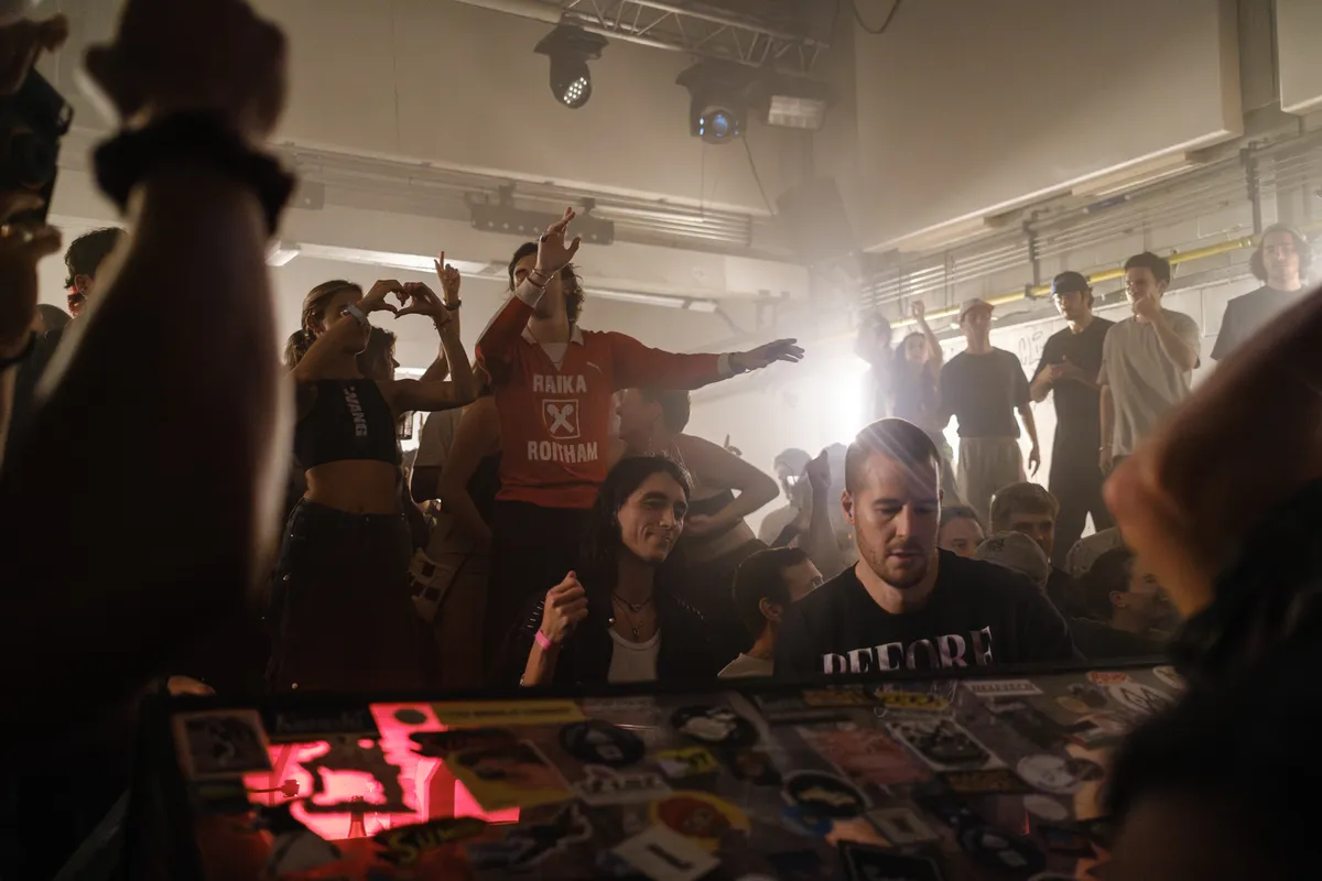 Shit. Ik betrap mezelf erop tóch mijn telefoon uit mijn broekzak te grissen en snel een filmpje te willen maken terwijl het dak er effe af vliegt in het Skatecafé. En ik ben niet de enige. Dan realiseer ik me: WIJ zijn wat er mis is met de dance-industrie anno 2024. Snel steek ik m’n telefoon maar weer weg. En niets posten, ok? Want het zijn dit soort filmpjes die de dansvloer-aandachtsspanne totaal verpesten. Hierdoor gaan ravers er namelijk steeds meer vanuit dat dít dan is wat clubcultuur inhoudt: telkens weer een euforische explosie!!! Elke plaat is een uitroepteken! Elke break een opmaat naar een volgende extase! Het is de equivalent van een rapper die telkens weer “3 2 1!” brult om maar een reactie teweeg te brengen.