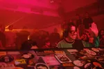 Partok is nog zo’n figuur die regelmatig in de Panoramabar te zien is, en met Amsterdammer Sandrien achter de draaitafel zet-ie direct stevig in. Ook house, maar dan wat bonkiger, gemener in het laag. Maar ook nog jolig: ik zou zweren ergens paardengehinnik te horen, en een kazoo?! Partok trekt een plaat eruit met een dikke rewind, waarop zij keihard begint te schaterlachen. Ook top: de Britse nineties-tune ‘Luv Is All U Need’ met zijn ronkende percussiebreak.