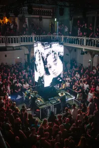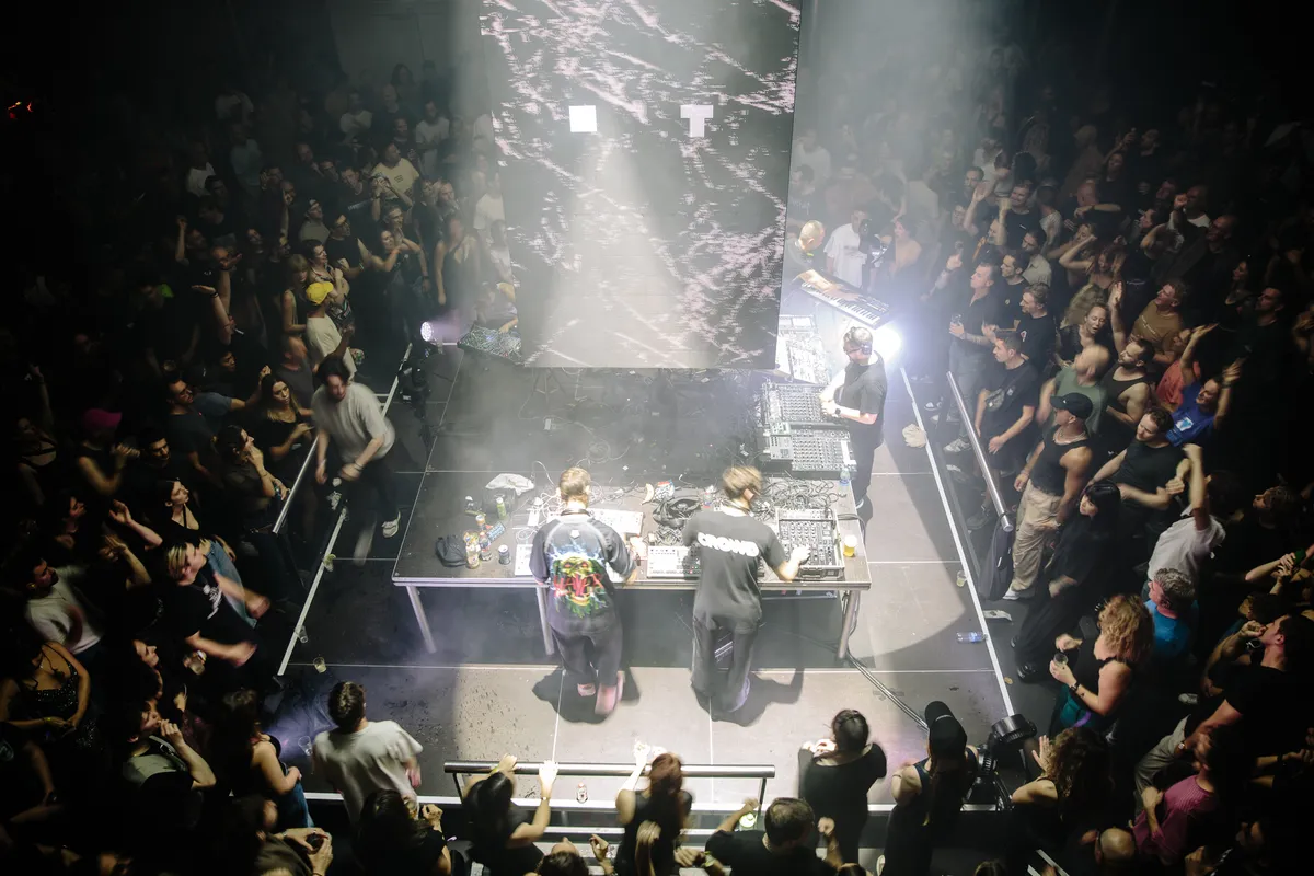 Er hangt inmiddels een behoorlijke sekte rondom deze movement van Speedy J. Er zijn veel mensen die trouw mee-nerden via Discord, die daar ook de twee uur durende Zoom-sessies bekijken waarin artiesten vertellen over hun setup, en die hier het STOOR-logo fier op hun shirts tonen. Veel van hen staan vooraan het gezelschap op de vingers te kijken, elke climax extatisch brullend en juichend alsof de loterij net op hun postcode is gevallen, maar er zijn ook behoorlijk wat die op het balkon rustig zitten toe te kijken. En wellicht komt het door Fjaak dat er naast de Warp-adepten en Aphex Twin-nerds ook best een aantal jongere types op de dansvloer staan te stuiteren, types die TikTok niet verguisen maar gebruiken als bron voor nieuwe muziek.