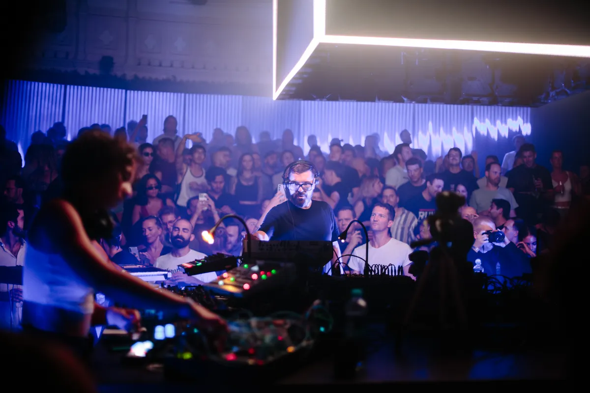Het concept is simpel en onveranderd: legend Jochem Paap, alias Speedy J, nodigt een viertal hardware-techno-nerds uit om 8 uur lang te komen jammen. 8 uur lang met z’n allen aan een grote vierkante tafel vol gear die middenin Paradiso is opgesteld, met daarboven een lichtgevende doos. Vandaag staan daar de vingervlugge Kink, Draaimolen-favoriet Nene H en de bigroom techno-mooiboys van Fjaak.
