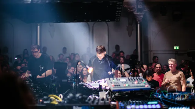 Al die fans denken vast min of meer hetzelfde: zien hoe er voor je neus telkens weer iets nieuws ontstaat, is echt te gek. Hoe een klein synthlijntje op de achtergrond kan uitgroeien tot het leitmotiv dat ze tien minuten lang een andere kant op stuurt. Hoe een 909-drumpatroon van Speedy J keihard kan botsen op de Juno van Kink. Hoe gemakkelijk ze van ingetogen naar loeihard en weer terug gaan. Hey, opeens een onaards mooie melodie! Tovert Nene H die daar nou uit haar apparayen? Komt dat opzwepende vocale sampletje bij Fjaak vandaan? En is het Kink die een soort steeldrum-geluid staat te ontstemmen? Vooral voor Kink zal het effe wennen zijn, die geeft normaliter zulke hyperactieve livesets en vormt nu een kleiner radertje in het geheel. Hij moet er behoorlijk om lachen wanneer Jochem de boel een tel stillegt en dan weer vollop gasgeeft.