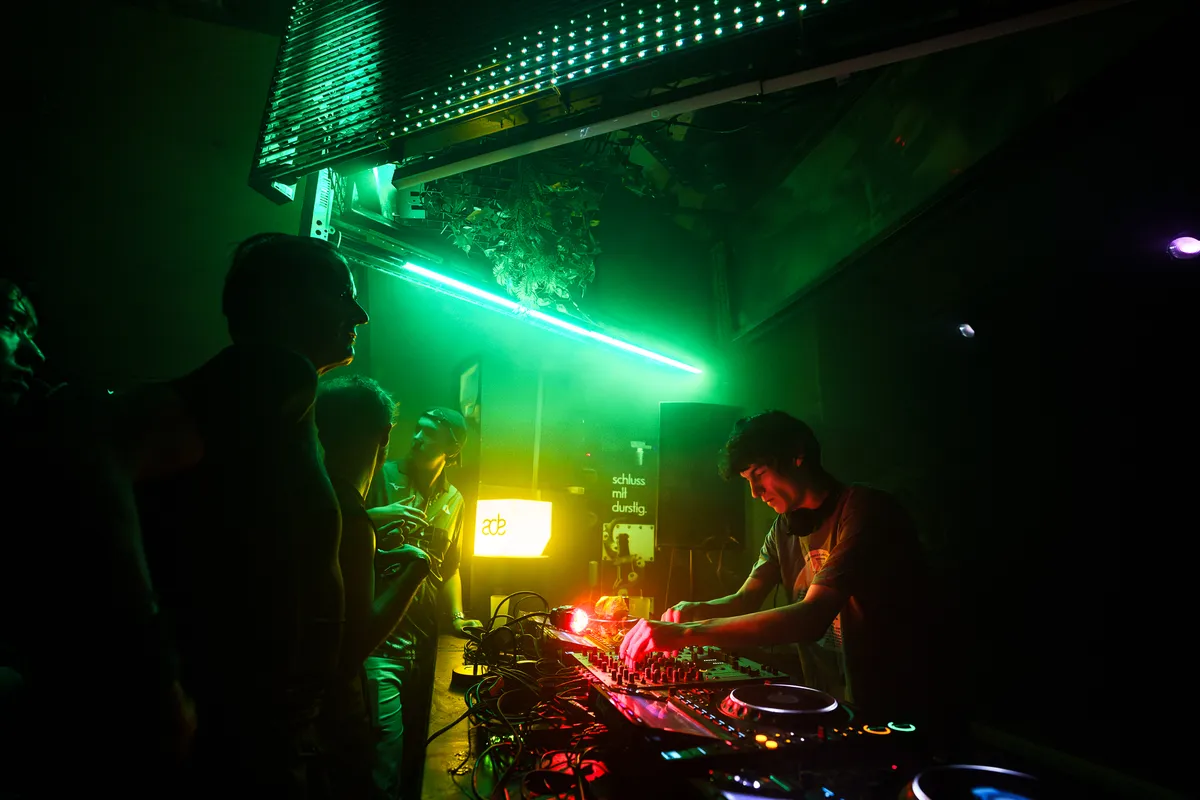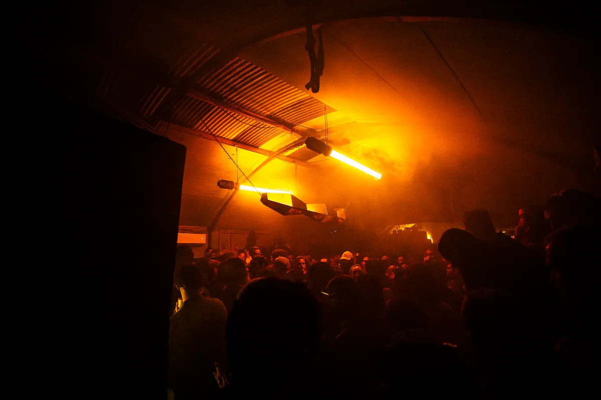 Niks aan de aankomst op het bedrijventerrein in Nieuw-West verraadt dat hier iets plaatsvindt dat ook maar enigszins op een feestje lijkt. Maar toch echt: tussen het metrospoor en een loods ingepropt ligt Der Hintergarten verscholen. Een heus ieniemienie festivalterreintje, vol kleine hoekjes en een decor dat direct uit de kringloop in elkaar geknutseld lijkt. Een hele fijne ontdekking, die blijkbaar alweer over een maandje moet sluiten. Maar vannacht is de met golfplaten overdekte Nest-stage voor even het terrein van The Crave en Ilian Tape: die eerste een Haagse festivalorganisator, die tweede een liefhebberslabel vol next-level breakbeat, techno en idm.