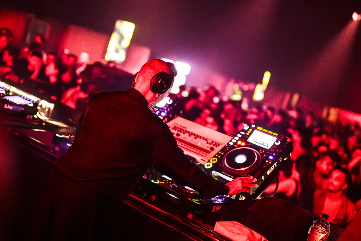 Wanneer de laatste golven van Mills’ set uitdoven, verandert de energie. Van beneden sijpelt een warme groove omhoog, boven bij Loud-Contact zijn Hector Oaks, Adiel en Quest hun vijf uur durende back-to-back aan het killen. De draaitafels krijgen geen seconde rust; platen erop, eruit, weer terug de hoes in. Zelfs het balkon staat nu vol, de booth omsingeld, mensen dansen er bijna ín. Geen megascherm, geen duistere visuals, alleen warmte, zweet en grijnzende gezichten. De baslijnen rollen als een ode aan ‘Billie Jean’, en als dat refrein uiteindelijk echt langskomt op 1.25 speed met een genadeloze kick eronder, zingt iedereen mee. Na de drum drills en staalharde set van Jeff Mills voelt dit als een wedergeboorte. Funky, los, euforisch. Mensen klimmen op dranghekken, zwaaien, lachen. Het contrast is precies wat de nacht nodig heeft, het bewijs dat house en techno elkaar niet verdringen, maar versterken.