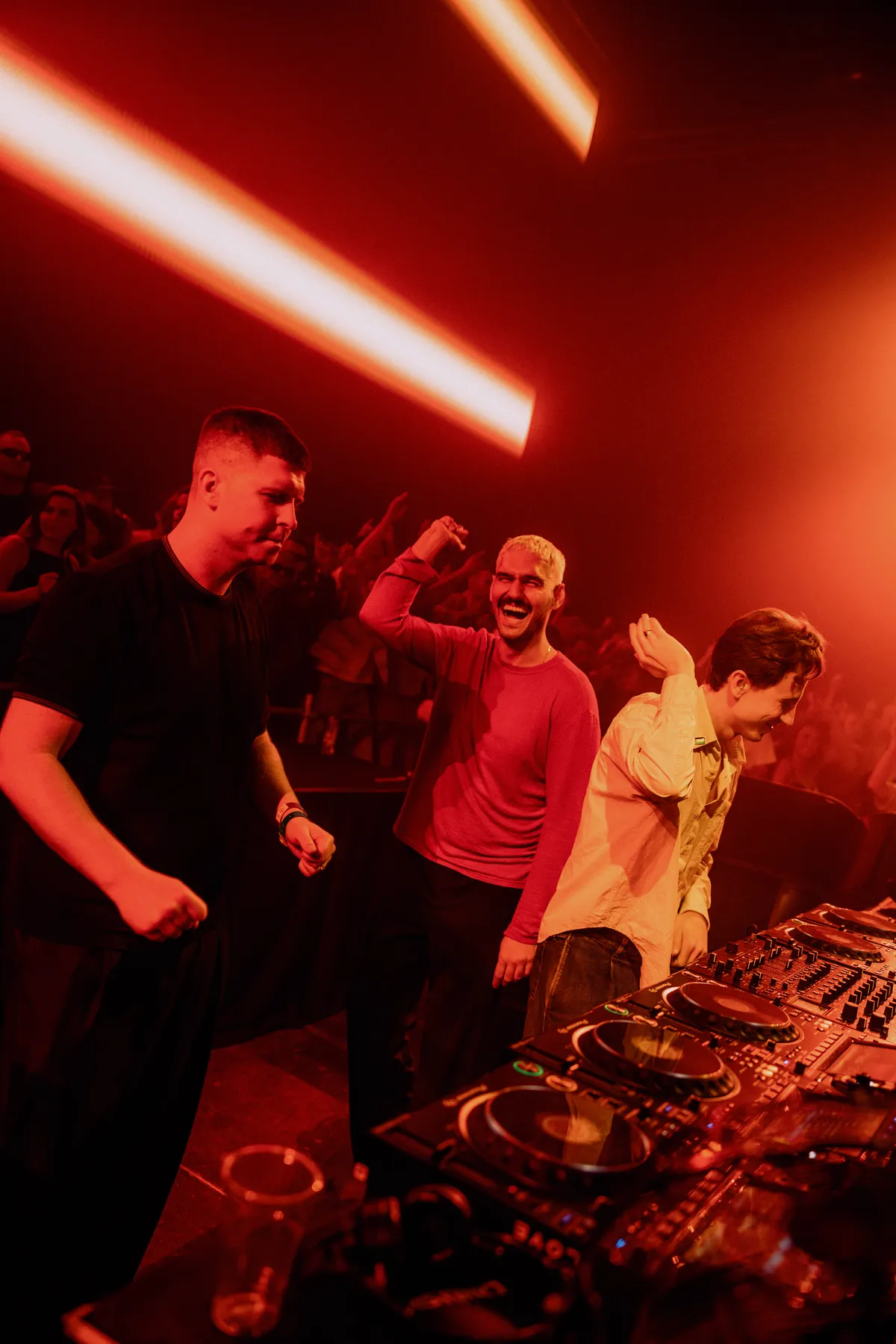 En dat is helemaal te voelen zodra onze goedlachse vrienden het podium bestijgen. Weg borrelspanning, met de eerste housey TLM-tracks staat de zaal opeens ramvol en met een kwijnende houseplaat vol gekreun geeft Moody Mehran een duidelijk startsein: vanaf nu wordt het alleen nog maar heel gezellig. De grote zwevende halo-installatie flitst van oranje naar alle kleuren van de regenboog – een mooie reflectie van de veelzijdige set die de drie in elkaar puzzelen. We worden getrakteerd op een buffet van hardtrance, poppy edits, gekke acid-lijntjes tot aan bass waarvan de rimpels in je voorhoofd komen te staan. Sommige tracks ietwat inwisselbaar, maar dat mag met dit publiek.